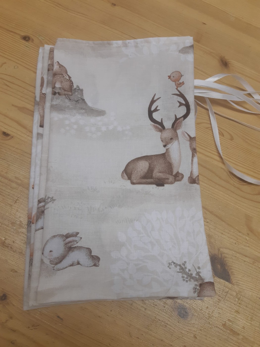 Kokvilnas auduma maisiņi ar Ziemasvētku motīvu. Izmērs 17 x 27 cm