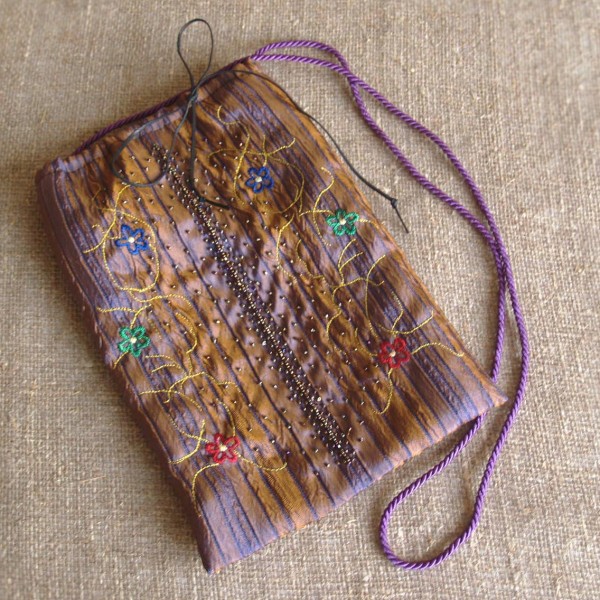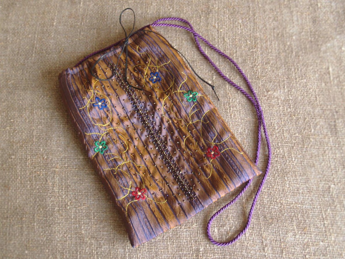 Galvenais foto tamborēta somiņa no diviem toņiem 18x12 cm liela ir odere un aizdare, plecu aukla, cena 14.00 eiro, 1. mākslīgā zīda izšūta somiņa, pērles, odere un aizdare, 28x18 cm, cena 18.00 eiro, 2. tamborēta somiņa, odere, aizdare savilkums, gara aukla 12x16 cm, cena 14.00 eiro, 3.aizkaru auduma mugursoma ar aplikāciju, oderi, auklas plecu siksnas, cena 17.00 eiro.