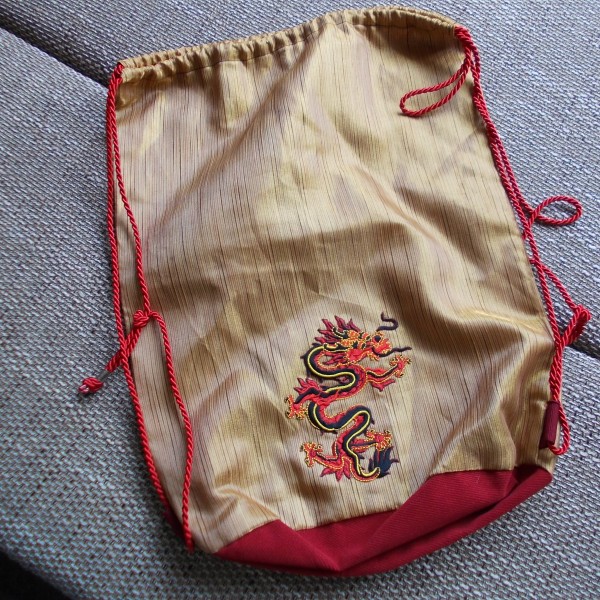 3.aizkaru auduma mugursoma ar aplikāciju, oderi, auklas plecu siksnas, cena 17.00 eiro.