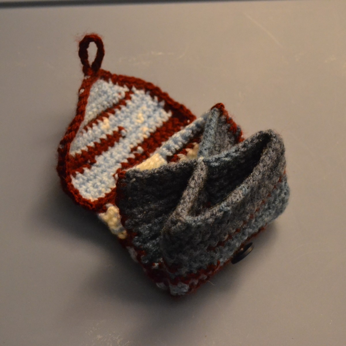 zili-sarkans tamborēts maciņš ar 3 nodalījumiem, lai organizēt kartes un tās atrast īstajā brīdī ir vieglāk!