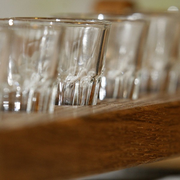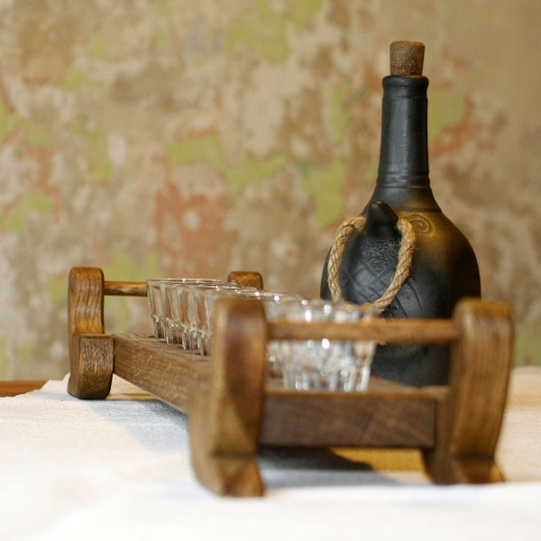 Paplāte 8 glāzītēm vai tējas svecītēm. Ligzdu dziļums 15mm, diametrs 45 mm. Apstrādāts ar koka darvu. Izmērs 50*10*7.