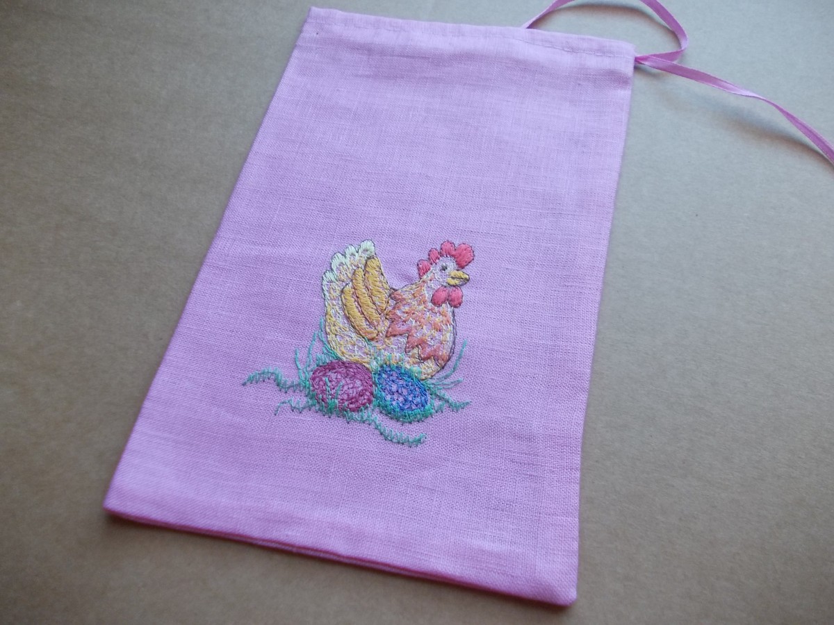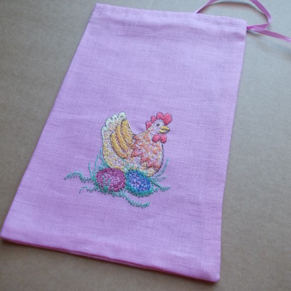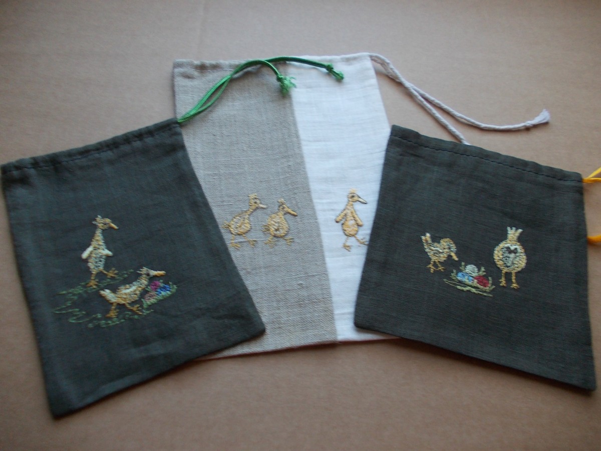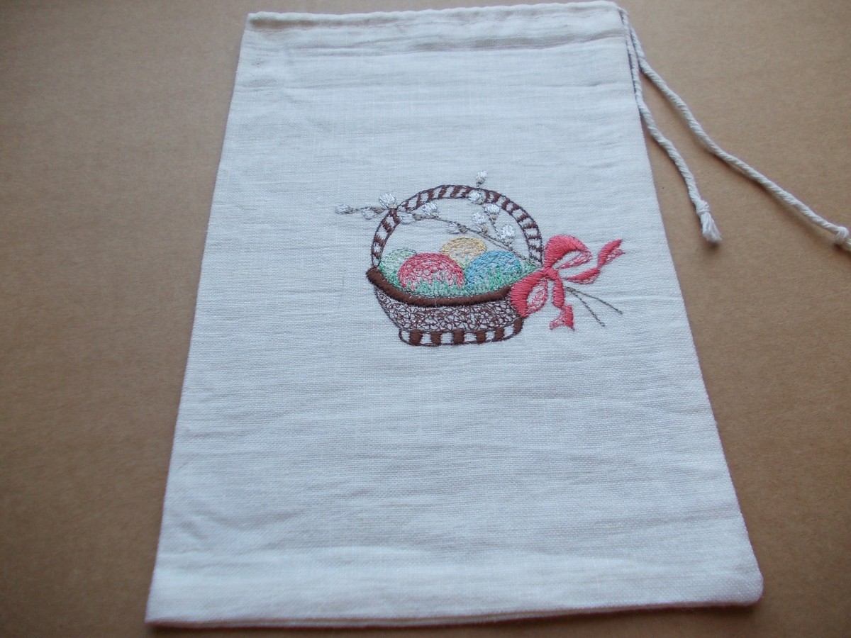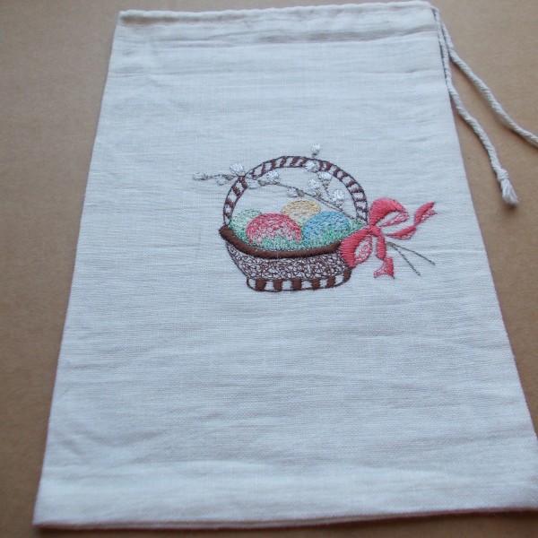 3. Lieldienu grozs, balta krāsa, 16x24 cm , cena 8.00 eiro. Visi zīmējumi autores, vienā eksemplārā, materiāls - lins.