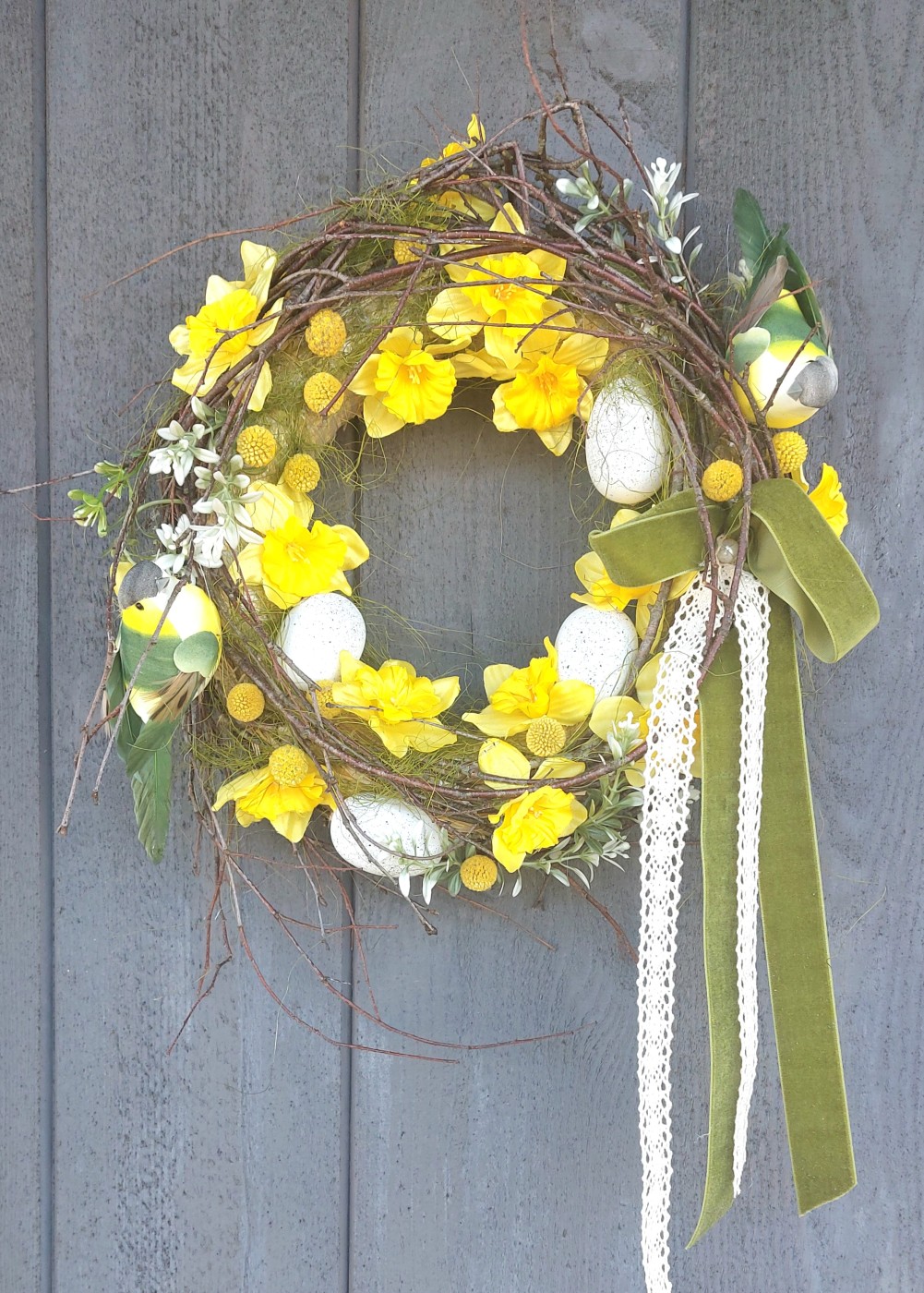 D=30 cm, veidots uz salmu pamatnes. Izmantoti dabas un mākslīgie materiāli