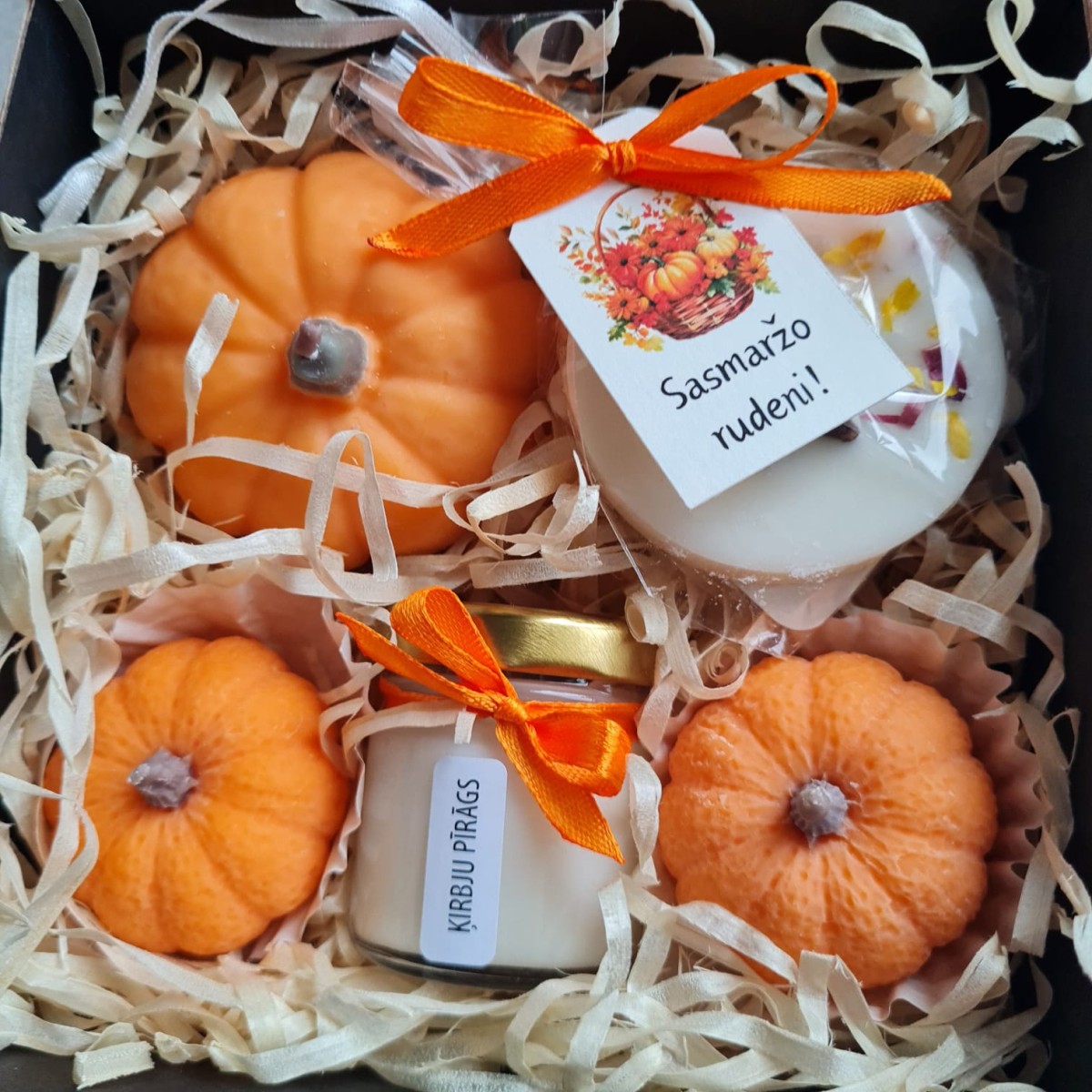 🎃 Trīs ķirbīšu sveces: lielā un divas mazās (bez aromāta);