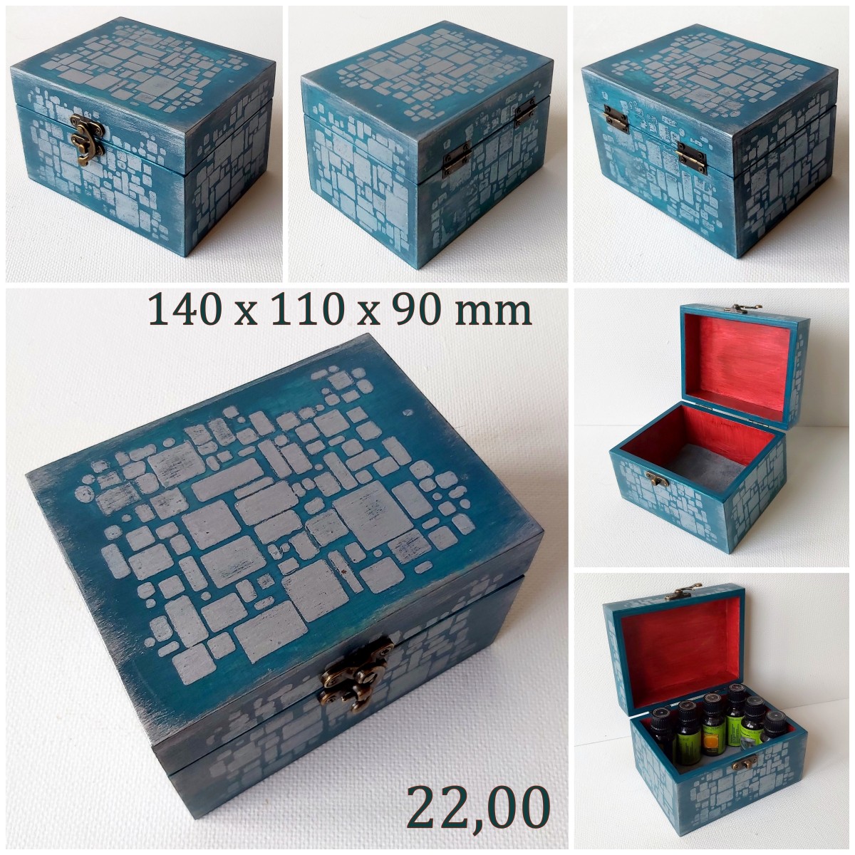 Шкатулка для хранений эфирных масел в стандартных бутылочках диаметром 3 см и высотой 7 см. Можно использовать просто как глубокую шкатулку для разных разностей.