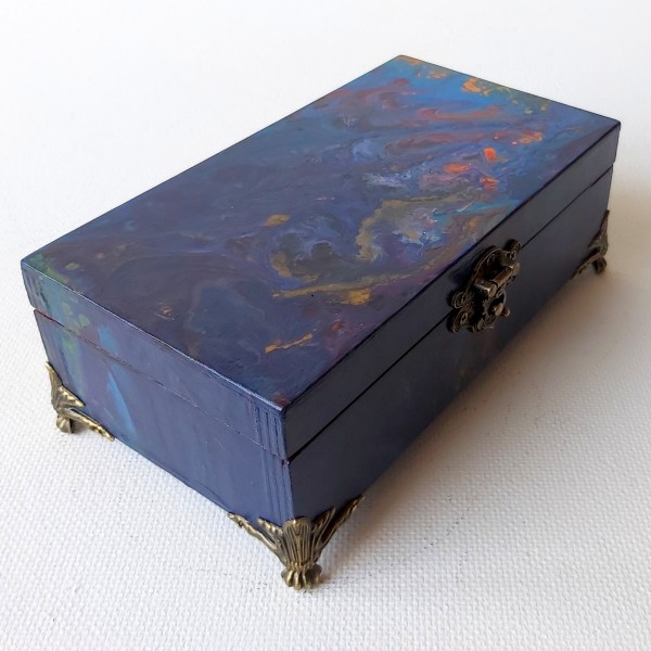 Ar rokām gleznota ar akrila krāsām abstraktā stilā. Aizsargāta ar laku.