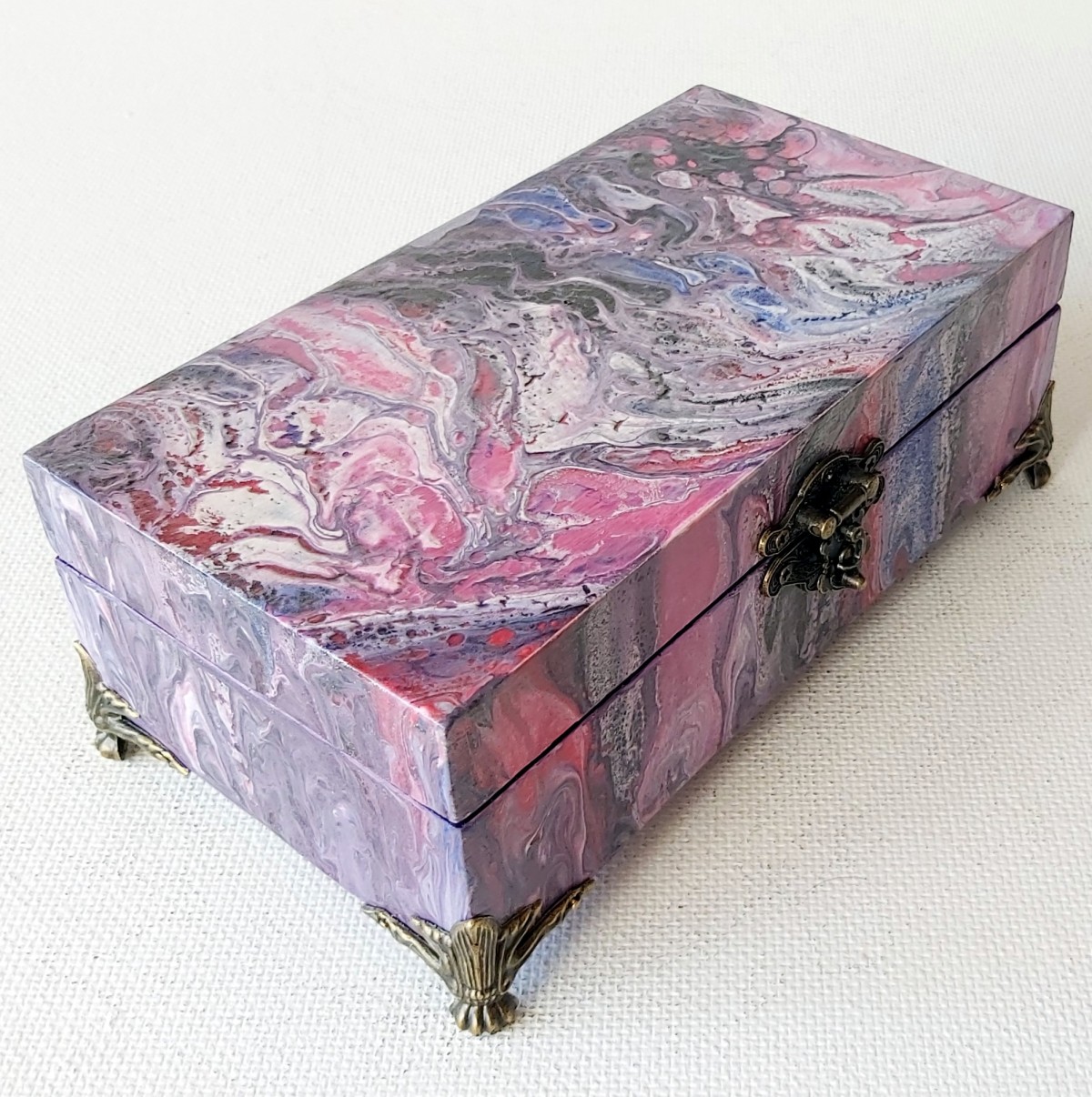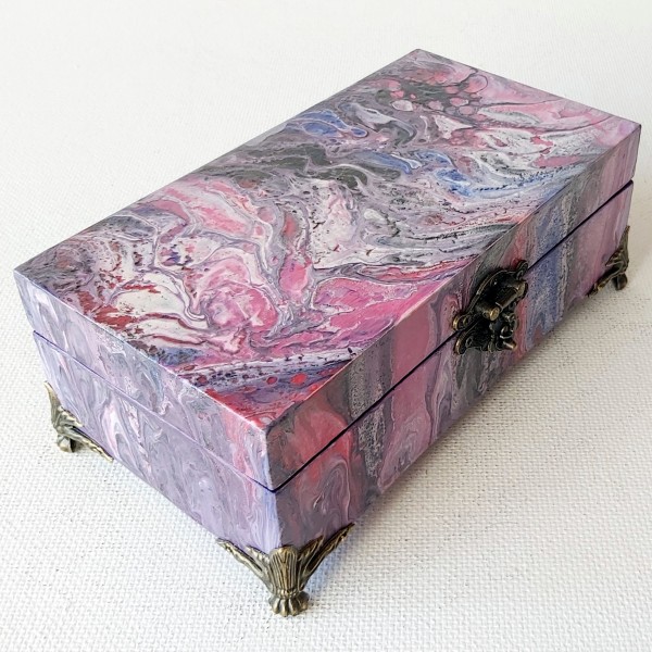 Ar rokām gleznota ar akrila krāsām abstraktā stilā. Aizsargāta ar laku.
