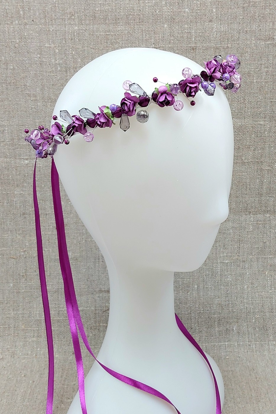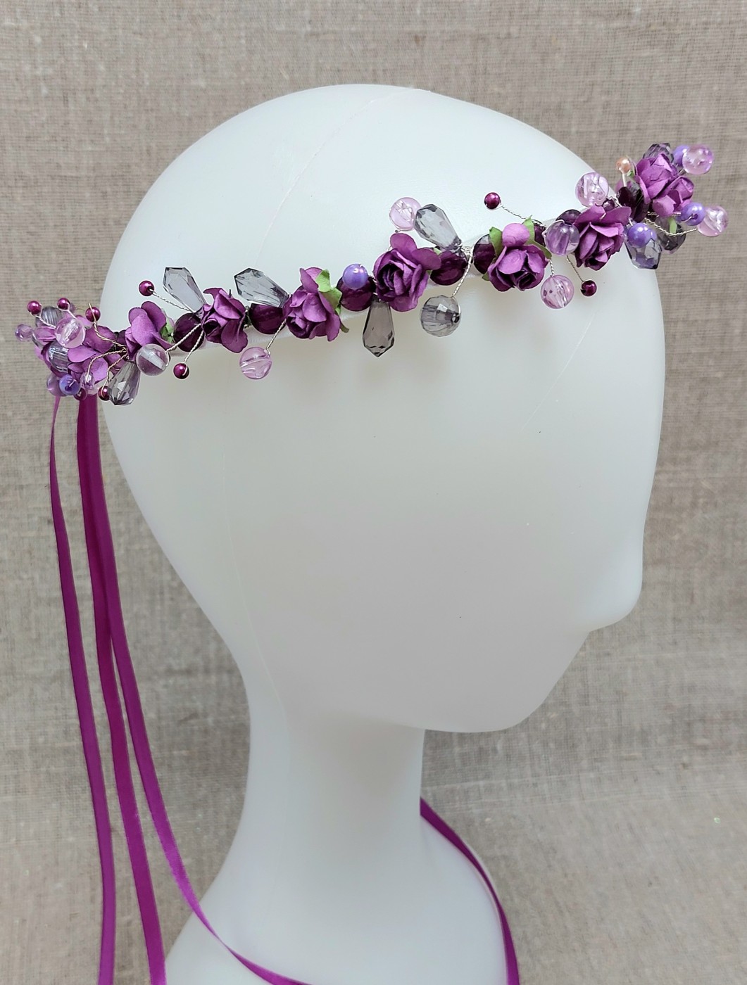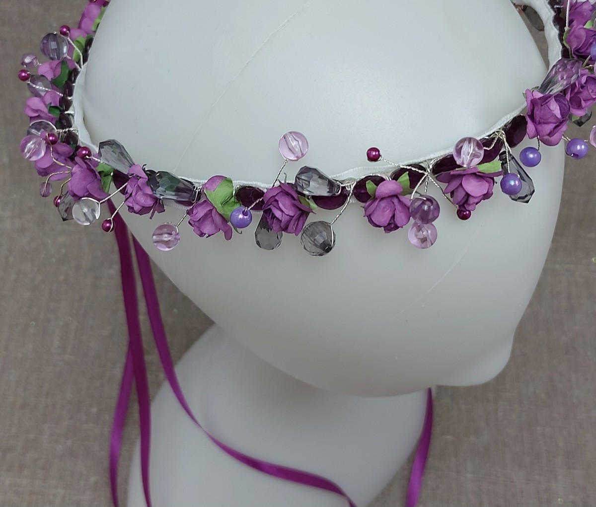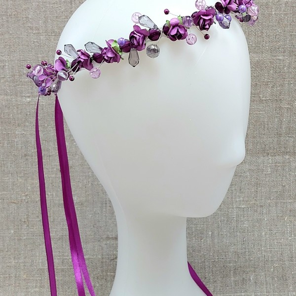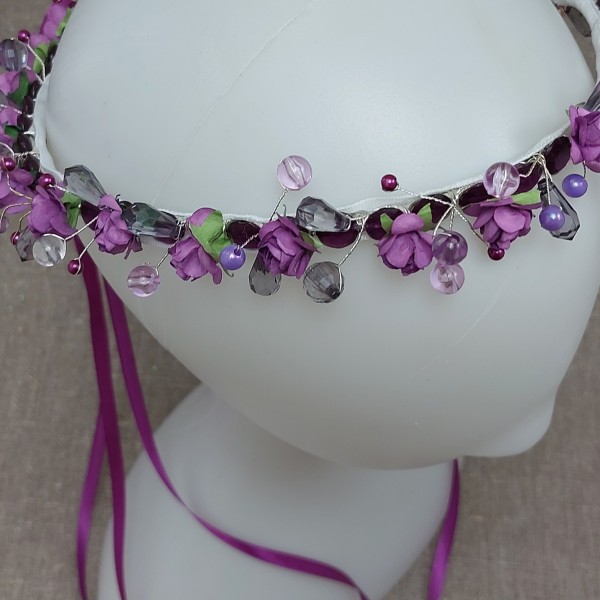 Mākslīgo ziedu un pērļu vainadziņš