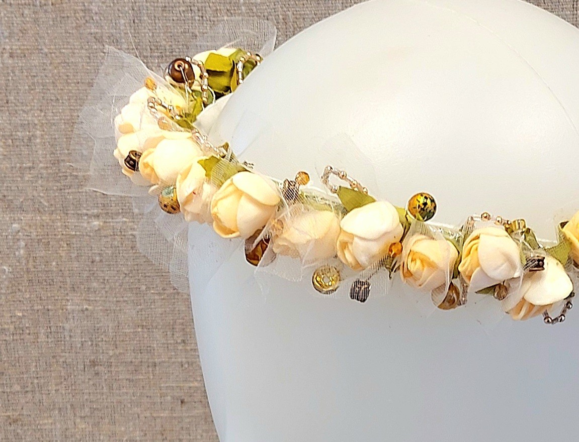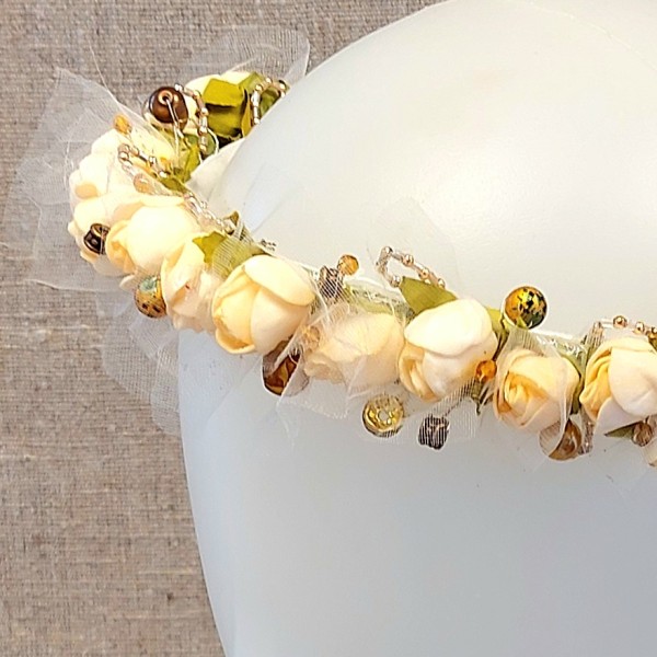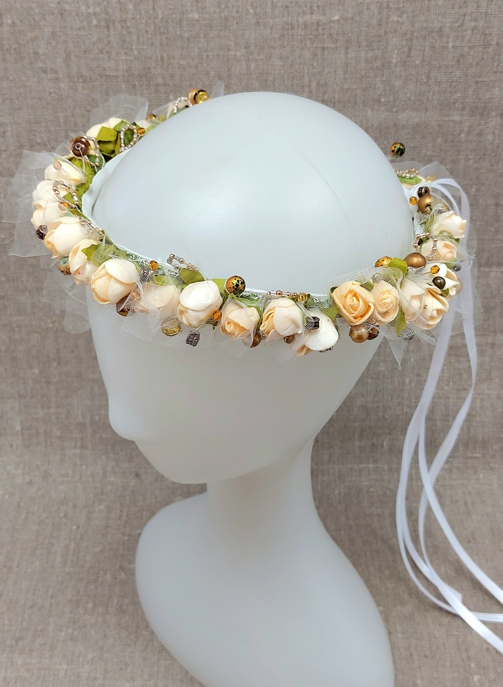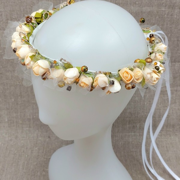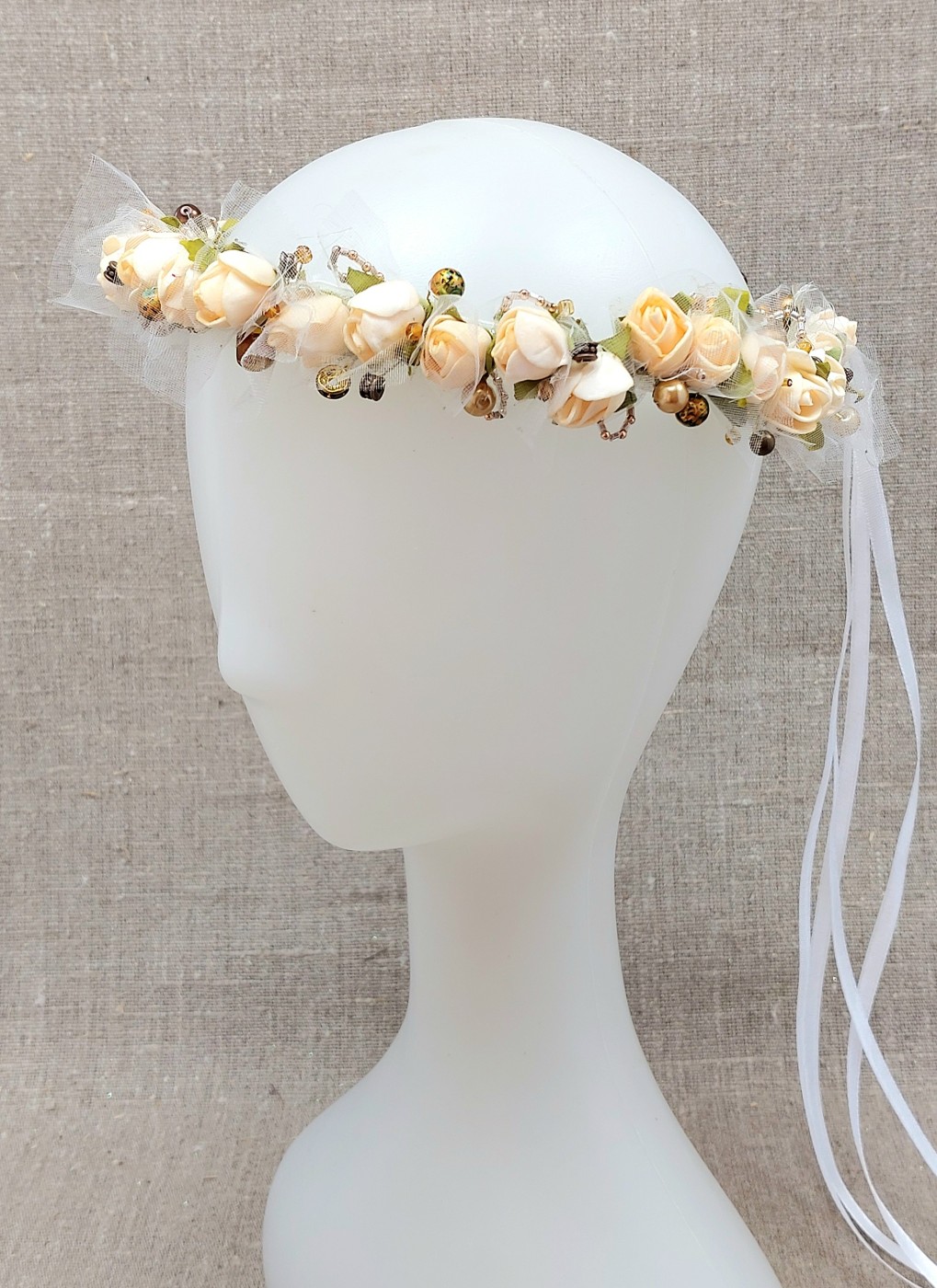 Ziedu garums 52-55 cm. Regulējas sasienot ar lentēm. Derēs gan pieaugušam, gan bērnam.
