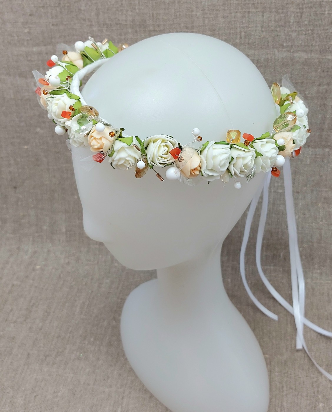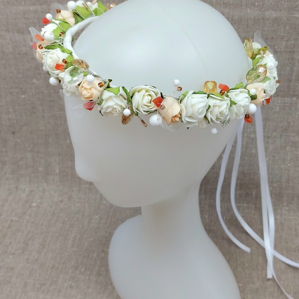 Ziedu garums 52-55 cm. Regulējas sasienot ar lentēm. Derēs gan pieaugušam, gan bērnam.