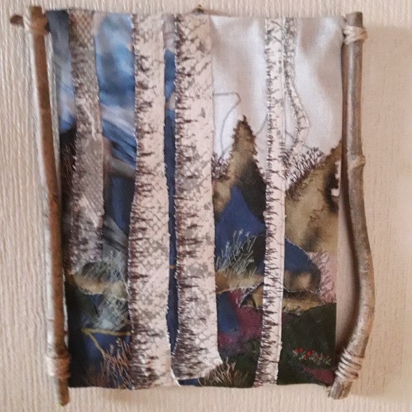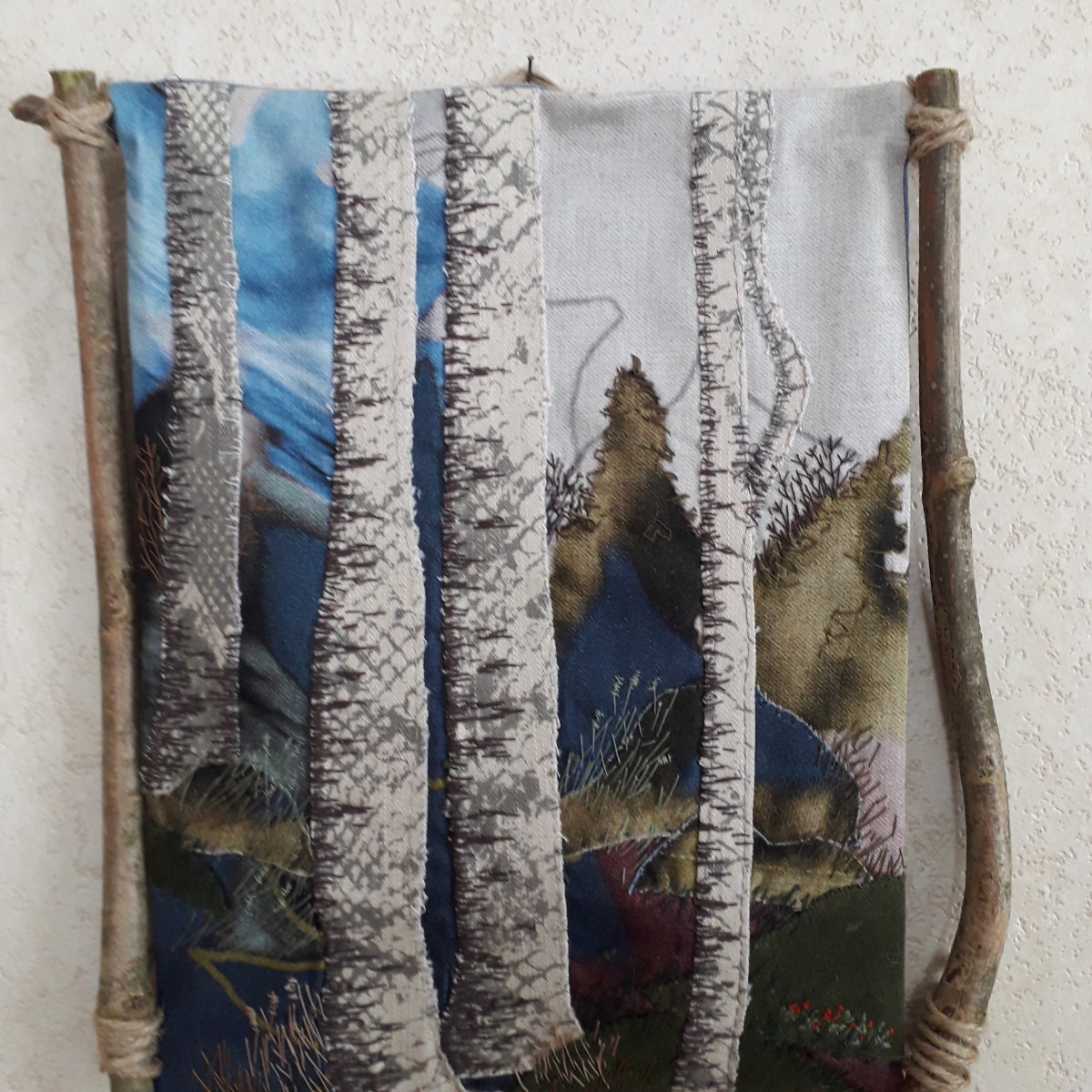 Neliela glezniņa no tekstila, aplikāciju tehnikā ar meža motīvu, aizmugurē kabata, kas var slēpt dāvanu vai pārsteigumu. Viegla sūtīšanai. Var vienkārši izgreznot telpu. 25 x 28 cm. #neparastas_davanas #sirsniga-davana #originalas_davanas