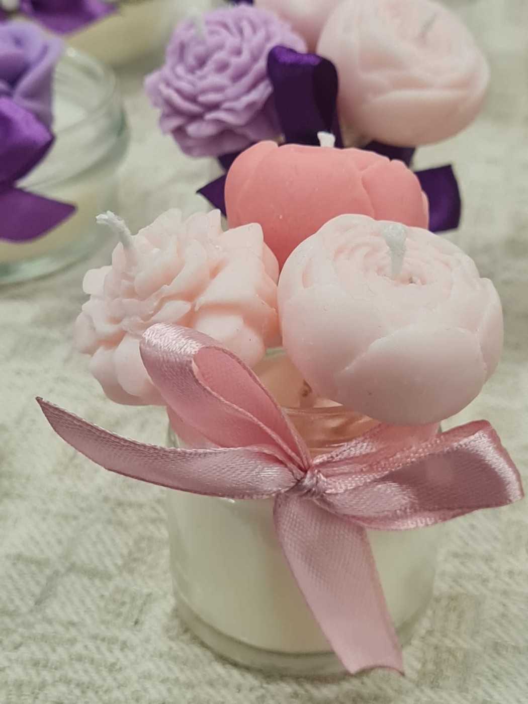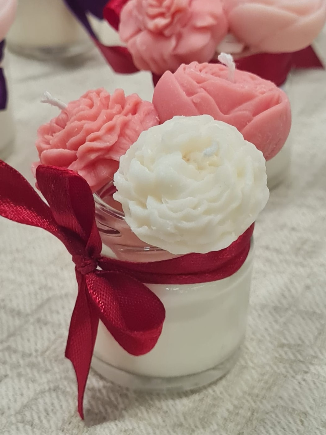 Sojas vaska svecīte ar mini sveču ziediem. 💛