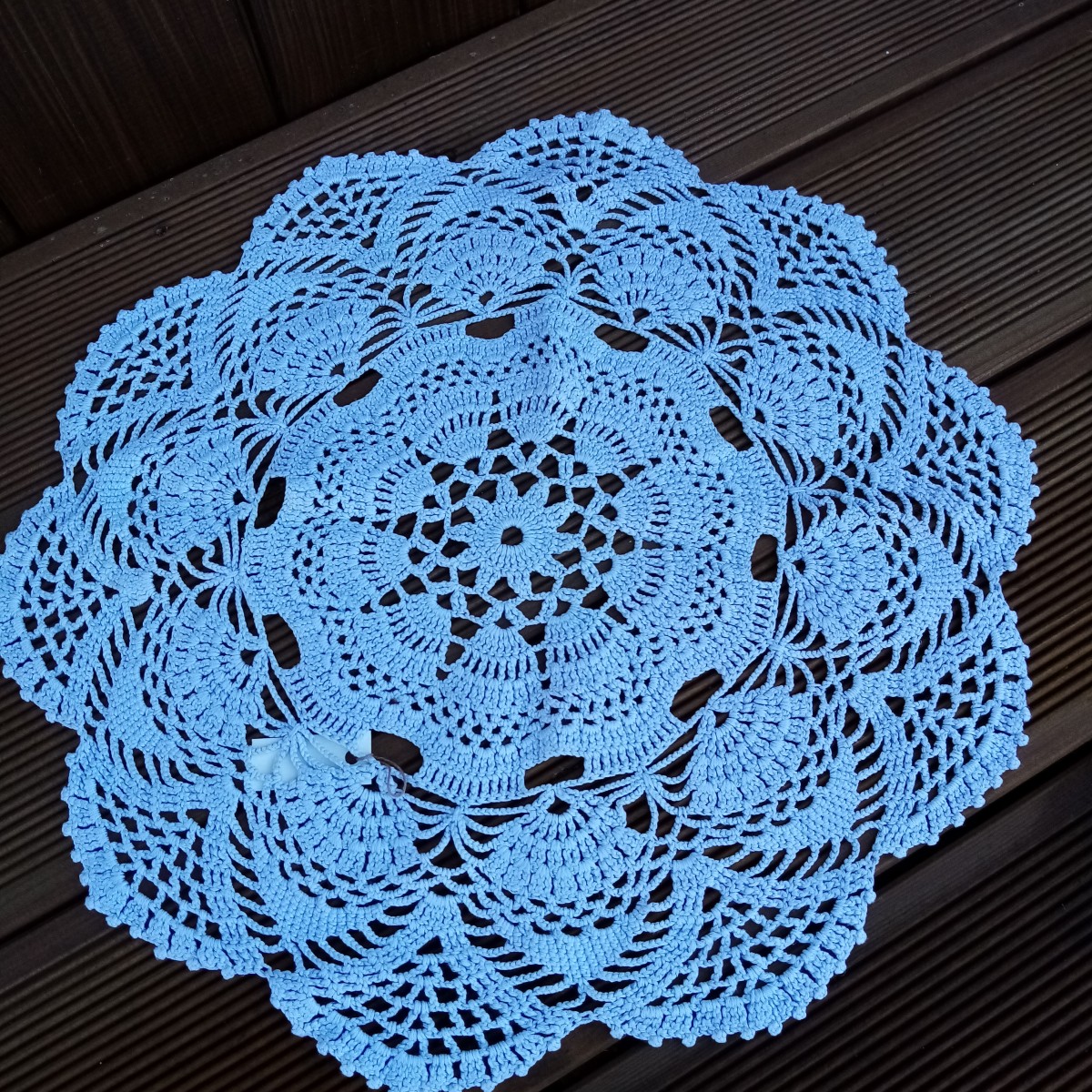 Tamborēta dekoratīva sedziņa. Materiāls - kokvilna. Diametrs un cenas dažādas. Ir vēl citas krāsas.