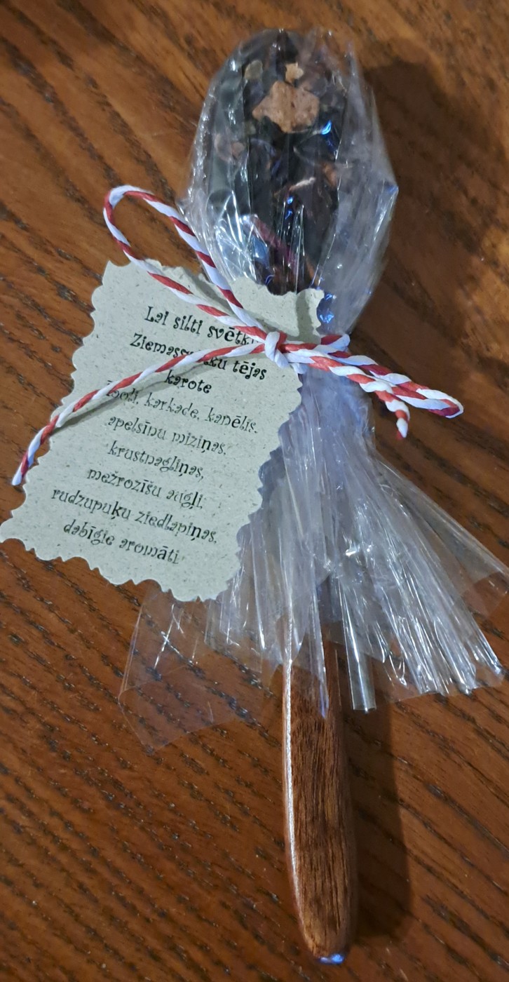 Dāvana.Ziemassvētku tēja koka karotē.