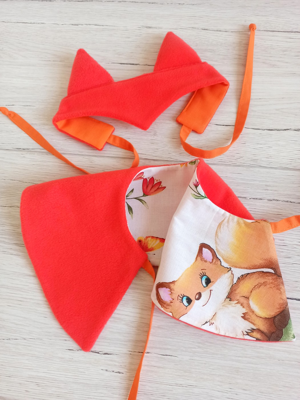 Karnevāla maska Lapsa: matu saite un apkakle ar aplikāciju.