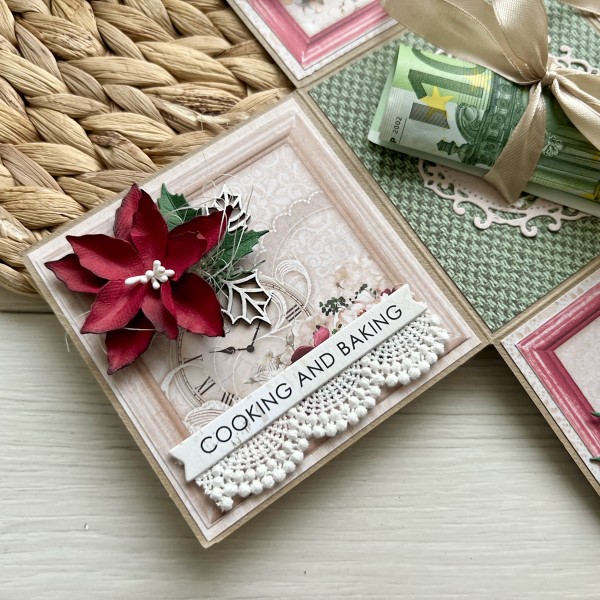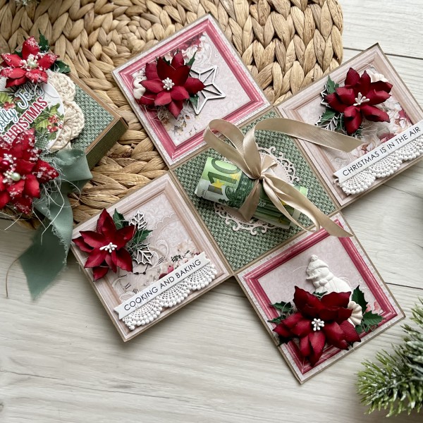Pārsteiguma Ziemassvētku kastīte, kas smuki atveras. Iekšā var ielikt naudas dāvanu.