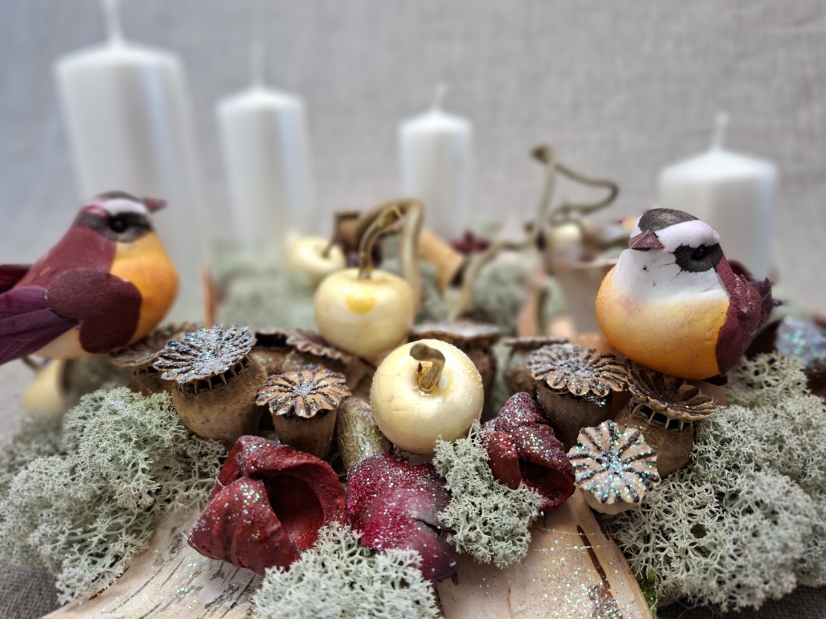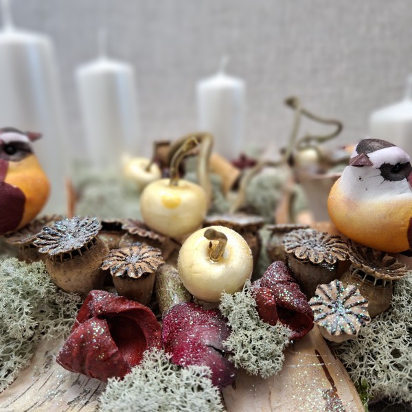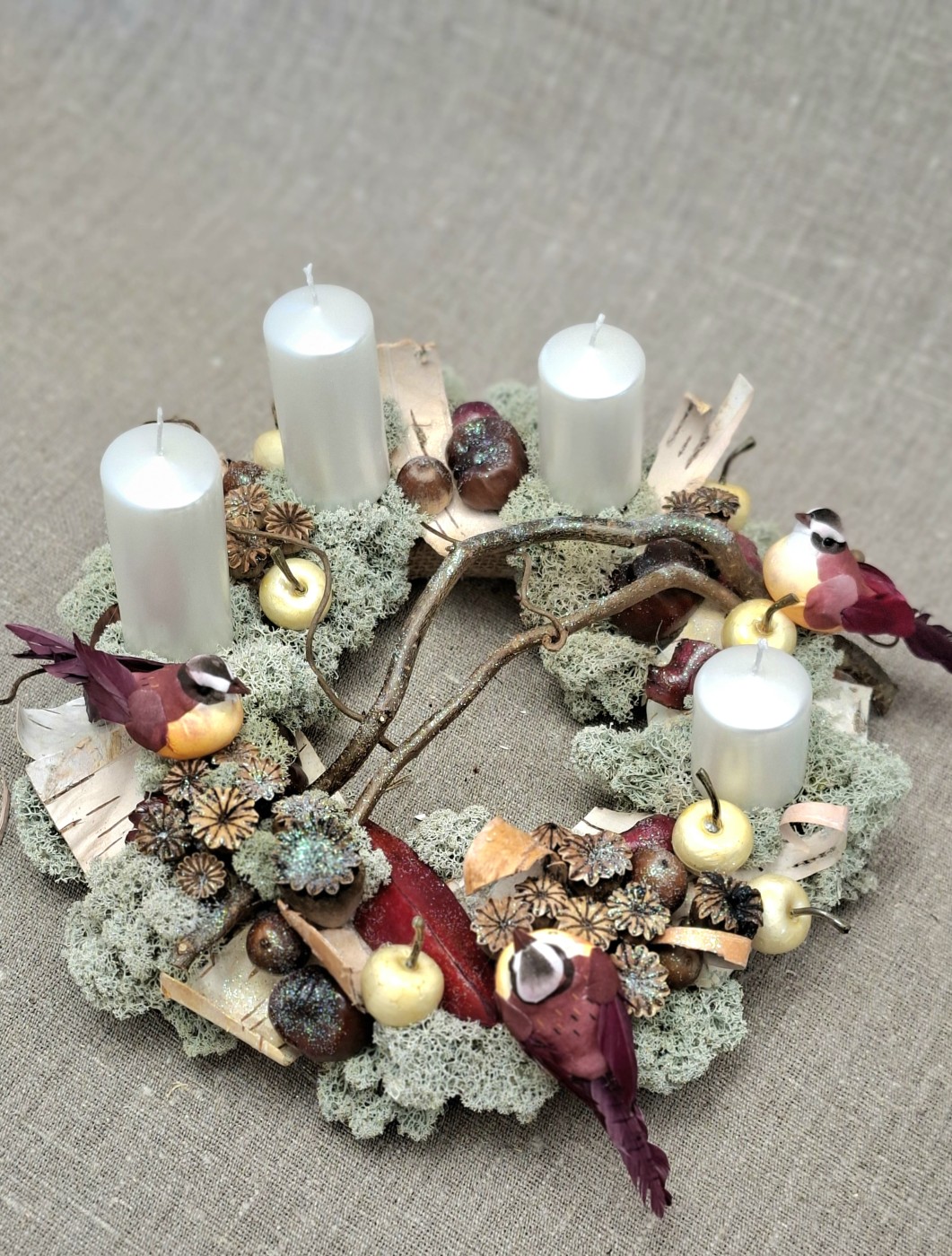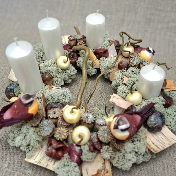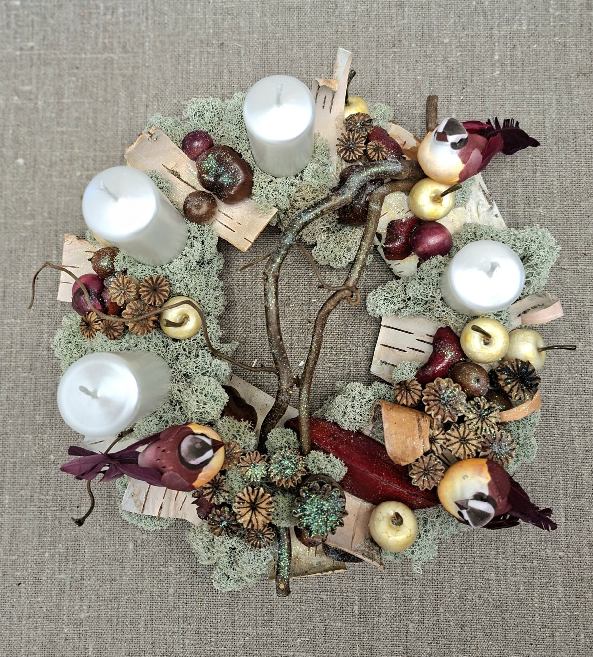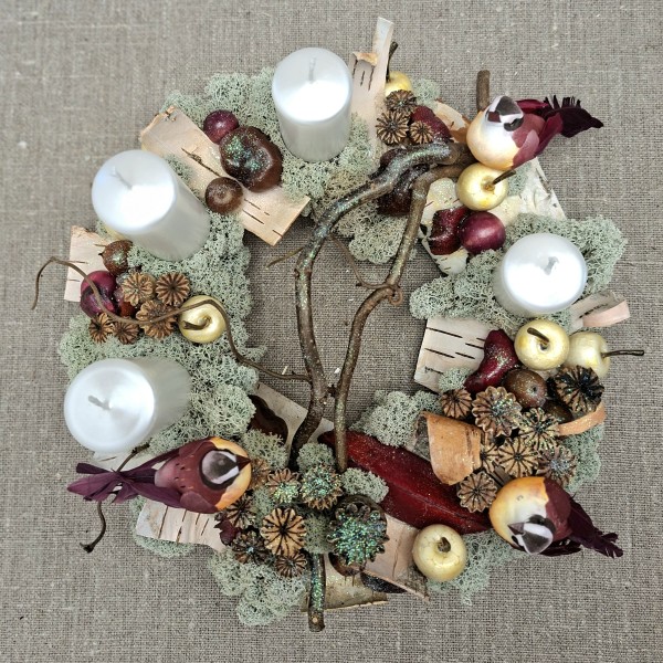 D=33 cm. Veidots uz salmu pamatnes, kas noklāta ar džutas materiālu , no dabas un mākslīgiem materiāliem .