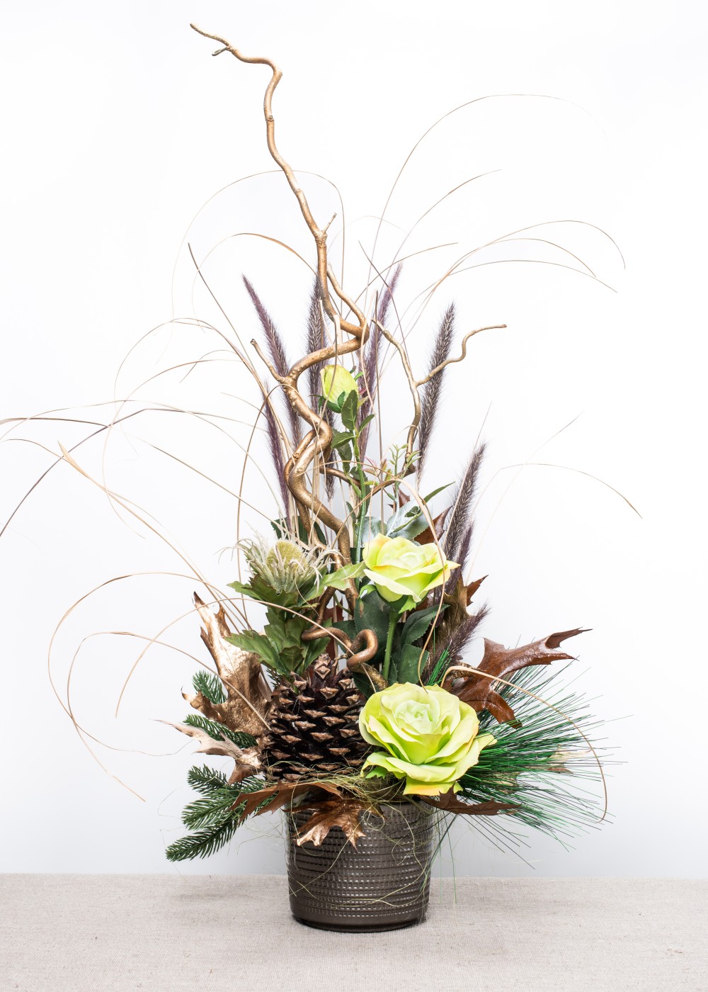 Veidots keramikas podā no dabas un mākslīgiem materiāliem. Kopējais h=55 cm