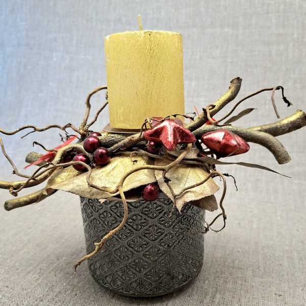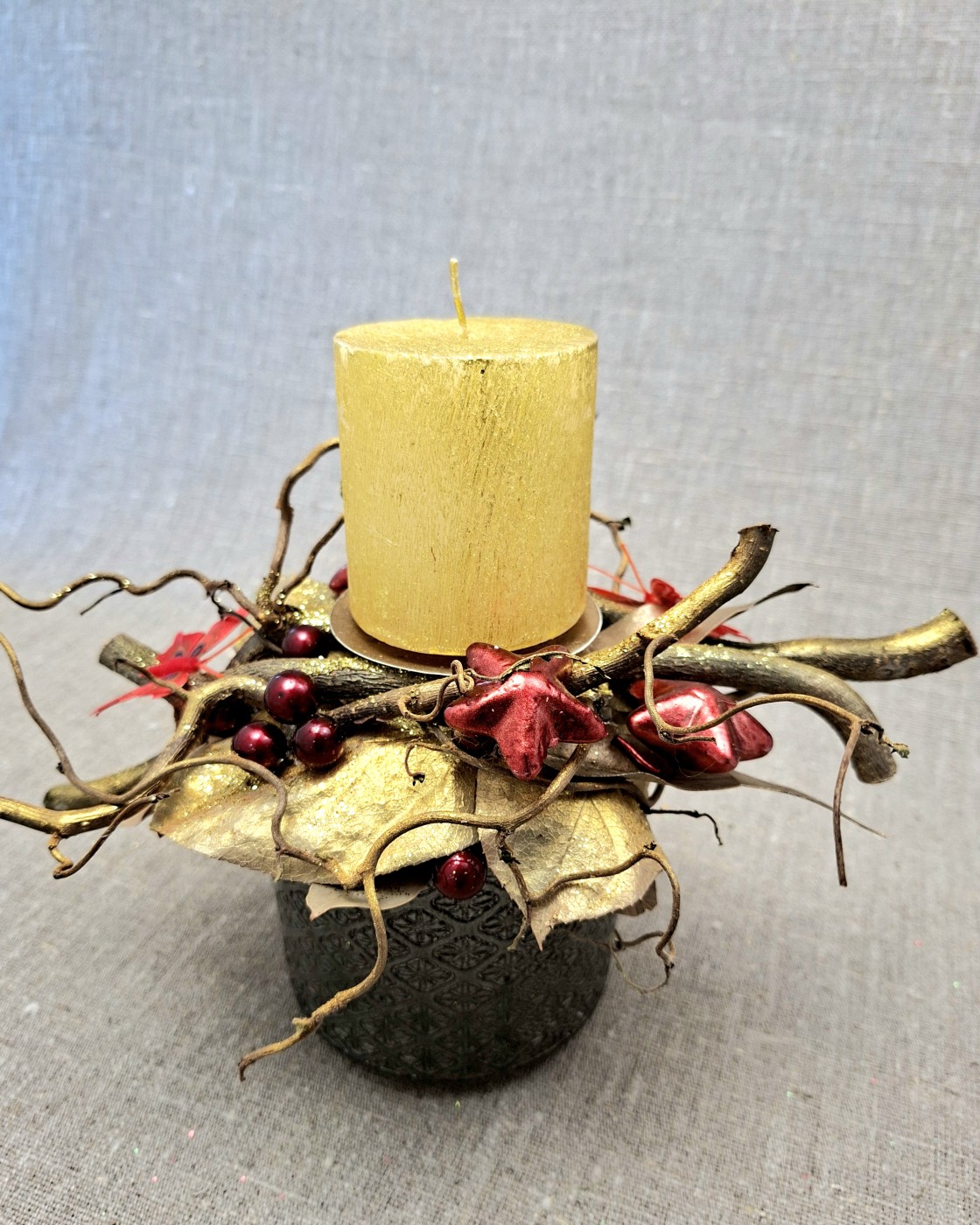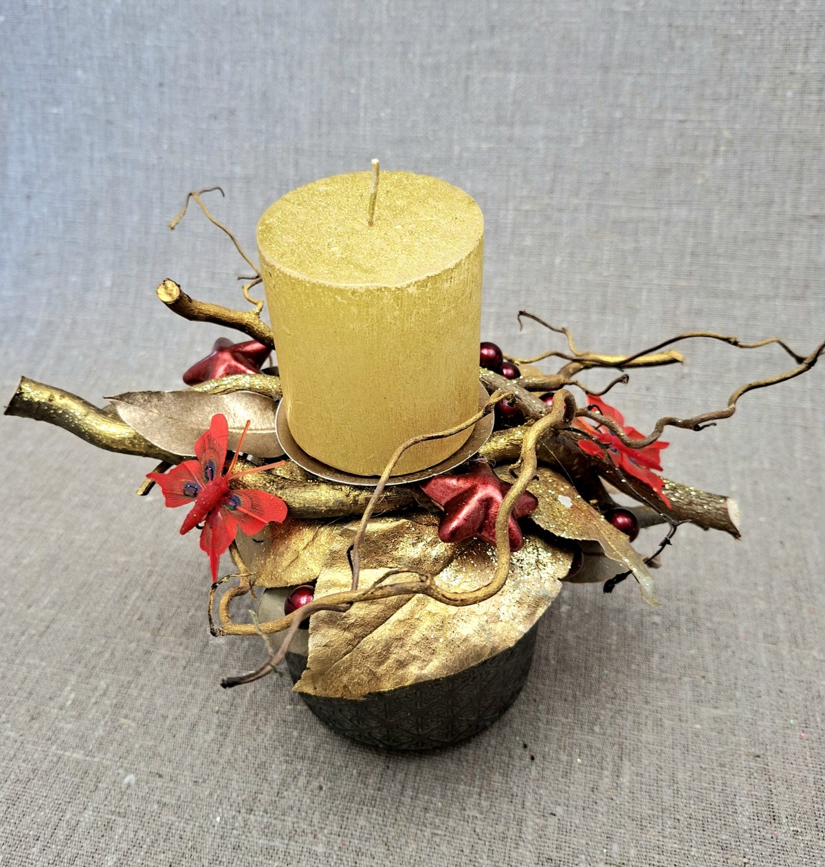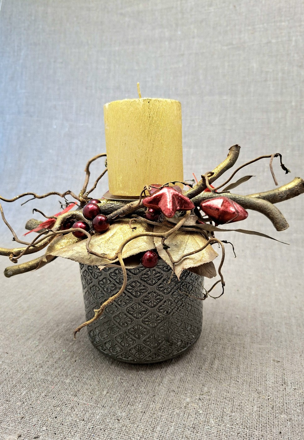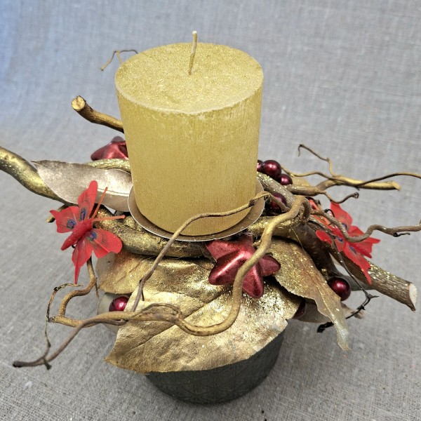 Veidots keramikas podā no dabas un mākslīgiem materiāliem. Kopējais h=32cm