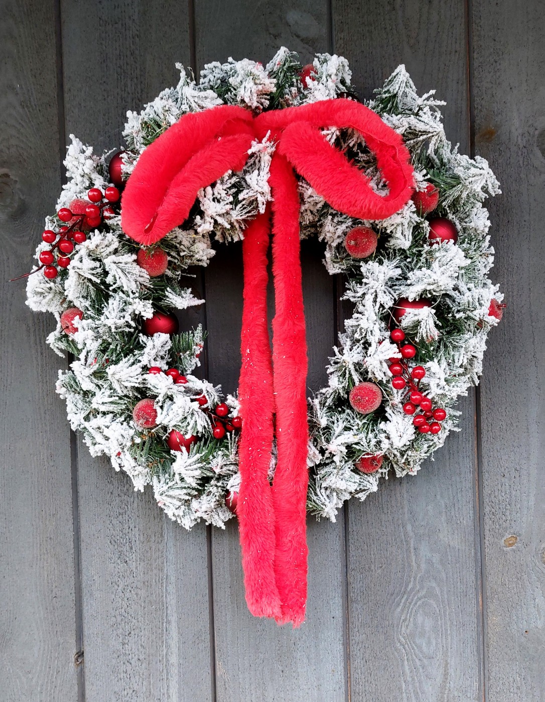 D= 45 cm. Izveidots āķītis vainaga uzlikšanai.Izmantotas stikla bumbas , mākslīgie un dabas materiāli. Var izmantot arī citus gadus