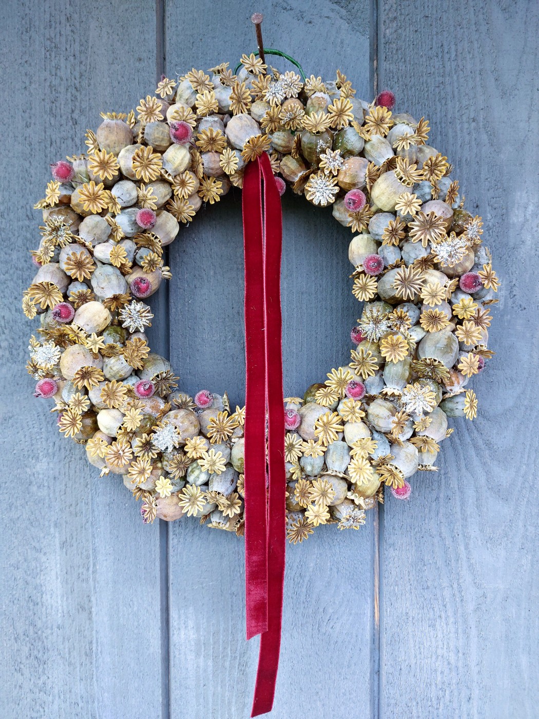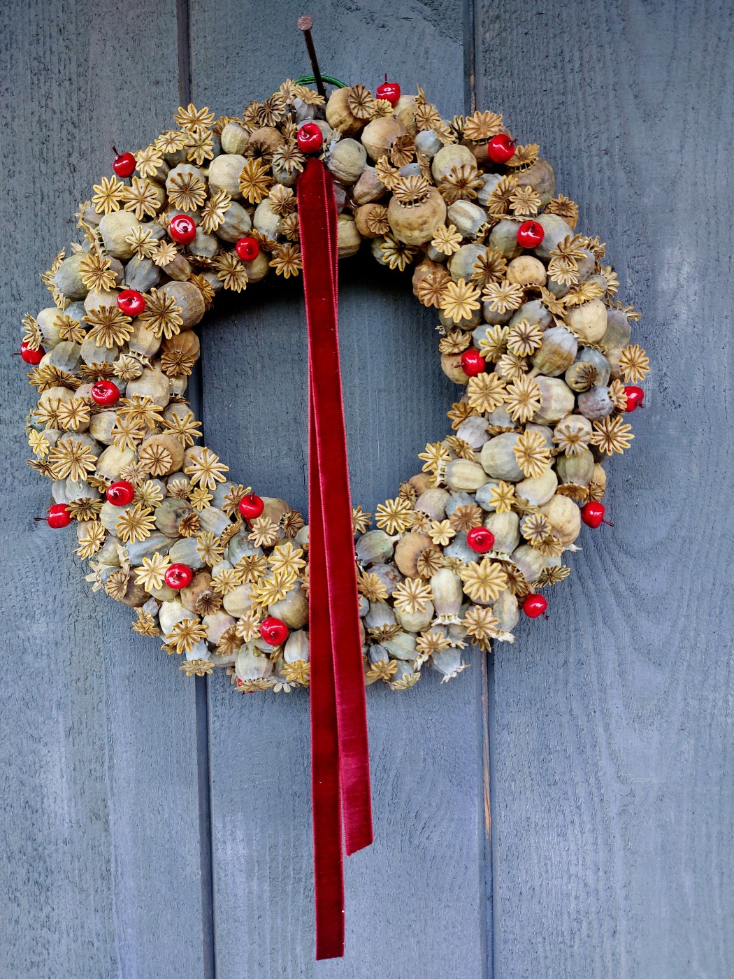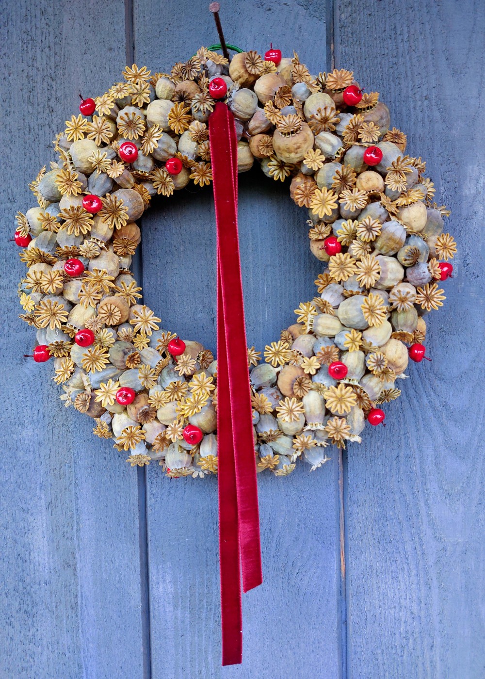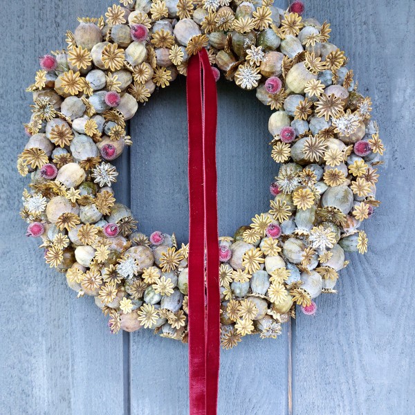 Veidots uz salmu pamatnes , kas noklāta ar džutas audumu. Papildināts ar sarkanu samta lenti. Ir divu veidu - ar apsarmojušām odziņām un spilgti sarkanām.