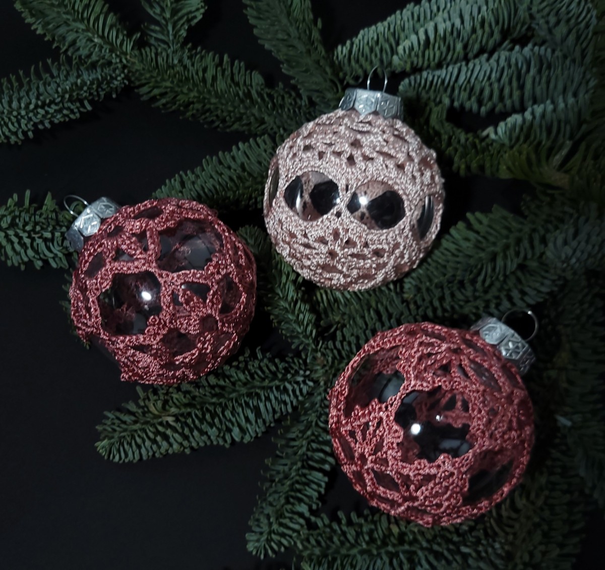 Eglīšu rotājumi - aptamborētas polipropilēna bumbas 6 cm diametrā.