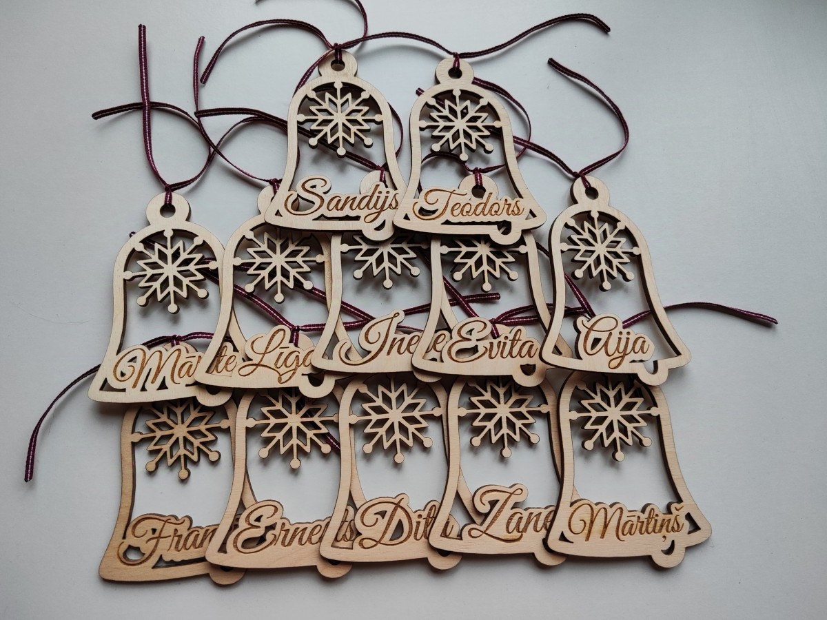 Bērza rotājumi ar gravējumu. Iegravēšu Jums vēlamos vārdus un zīmējumus. Formas - dažādas.