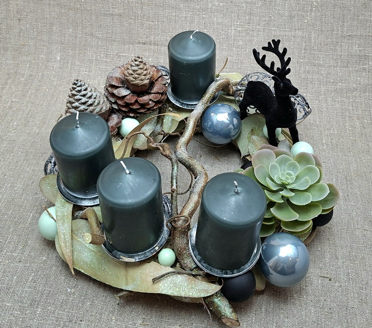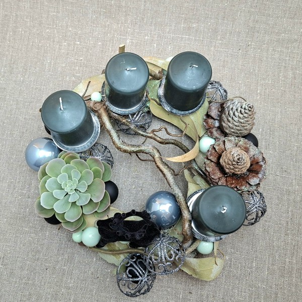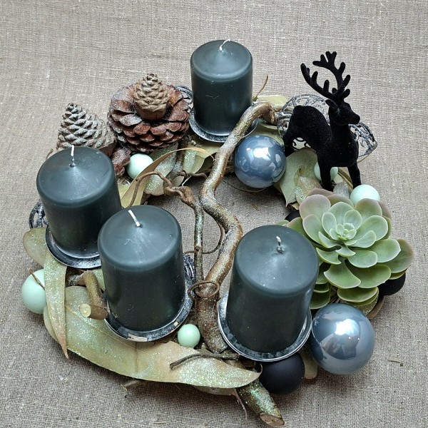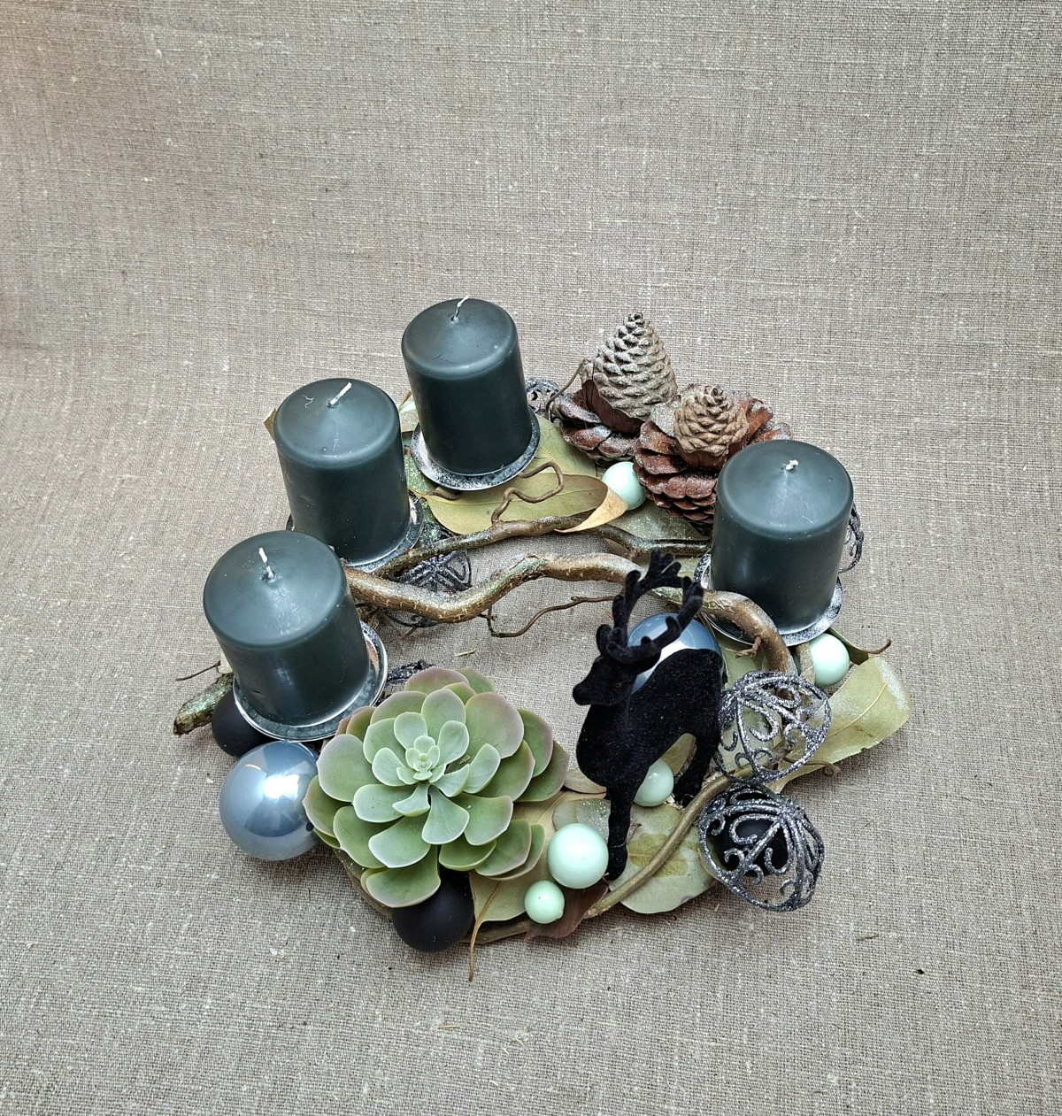 Veidots uz salmu pamatnes. Sveču augstums 9 cm. Vainaga d=35 cm