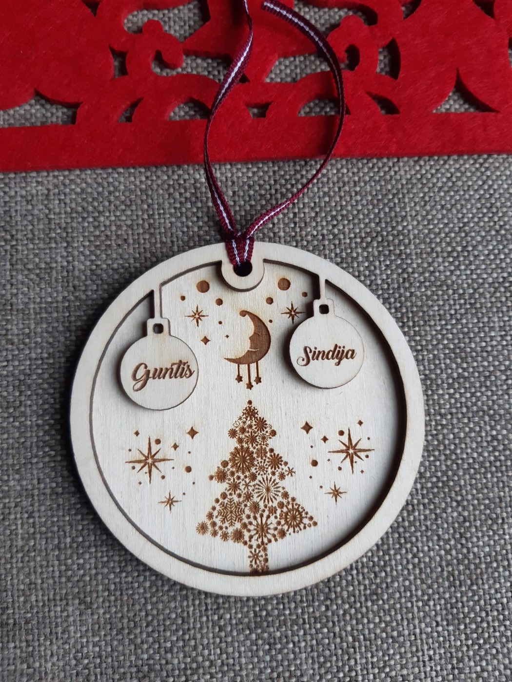Koka rotājums ar gravējumu. Iegravēšu Jums vēlamos vārdus. Citam vārdu skaitam aplūkojiet manu meistardarbs.lv lapu.