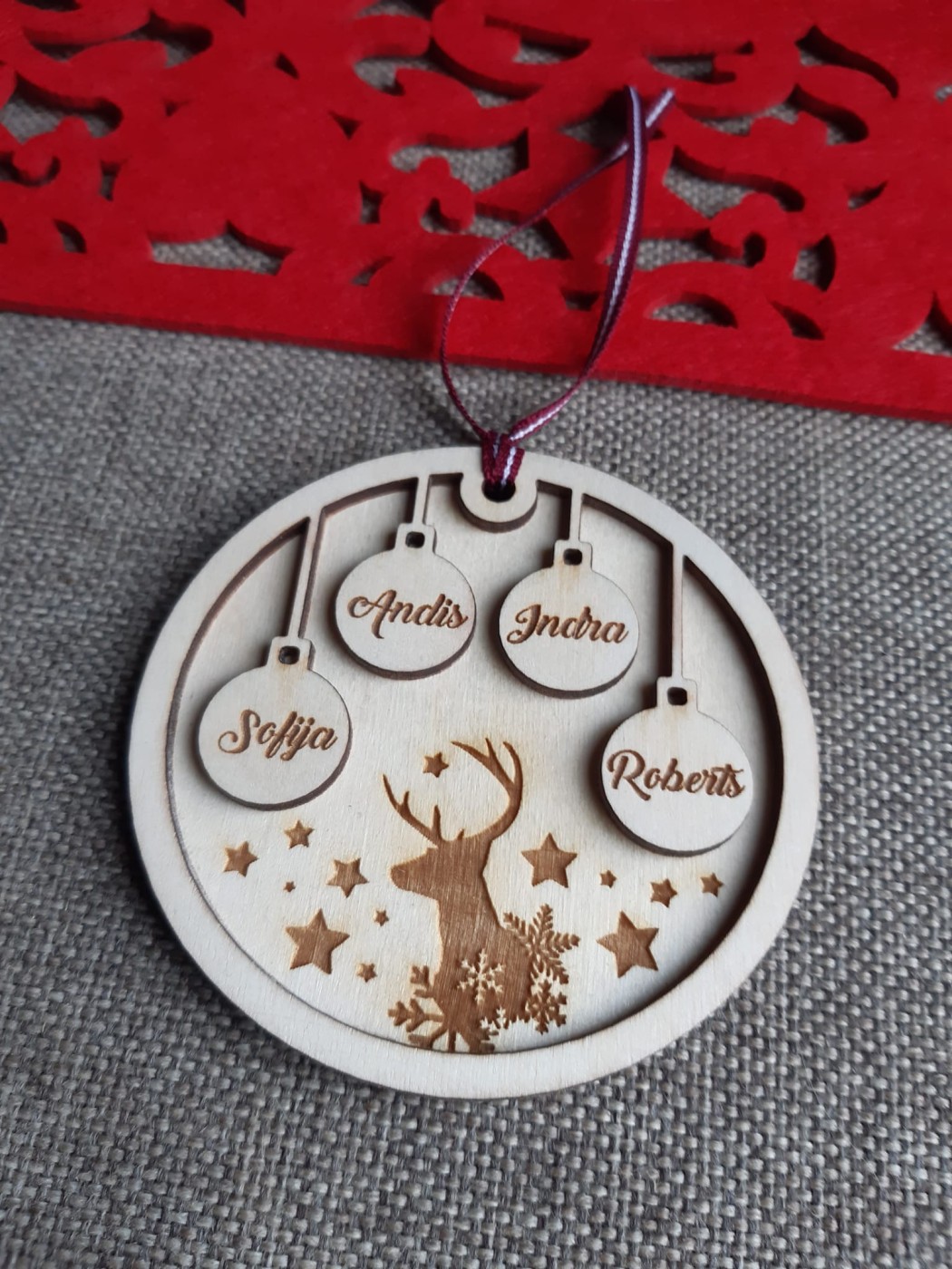 Koka rotājums ar gravējumu. Iegravēšu Jums vēlamos vārdus. Citam vārdu skaitam aplūkojiet manu meistardarbs.lv lapu.