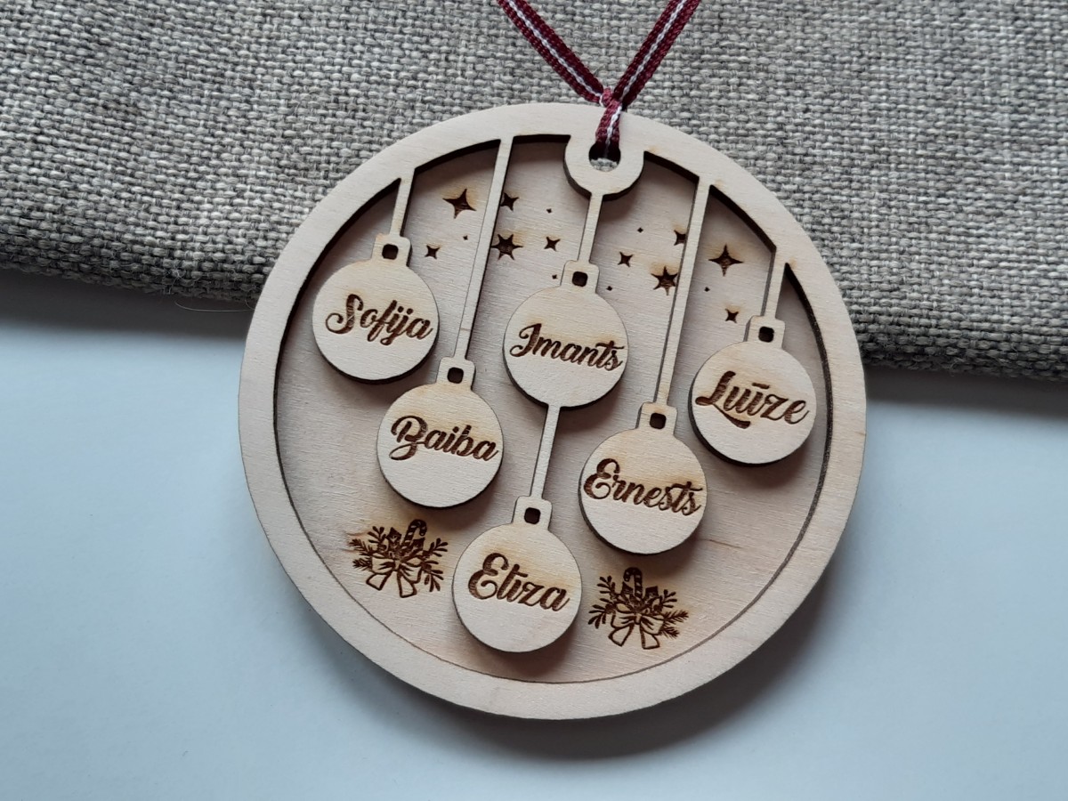 Koka rotājums ar gravējumu. Iegravēšu Jums vēlamos vārdus. Citam vārdu skaitam aplūkojiet manu meistardarbs.lv lapu.
