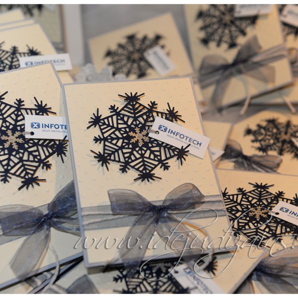 Ziemassvētkiem apsveikuma kartītes uzņēmumiem ar uzņēmuma logo, atbilstošajā tematikā un krāsās.