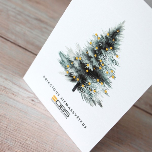 Ziemassvētku apsveikuma kartītes FESTIVE FIR 100x150 YELLOW & GRAY.