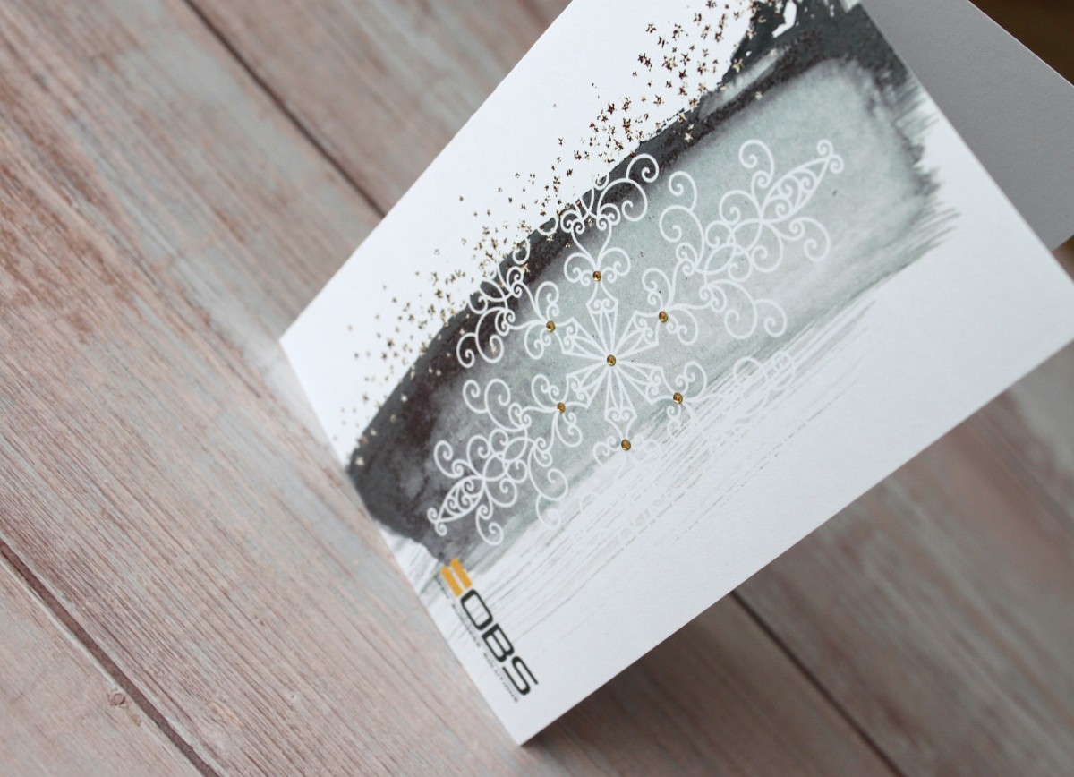 Ziemassvētku apsveikuma kartītes FOLK SNOWFLAKE 100x150 YELLOW & GRAY