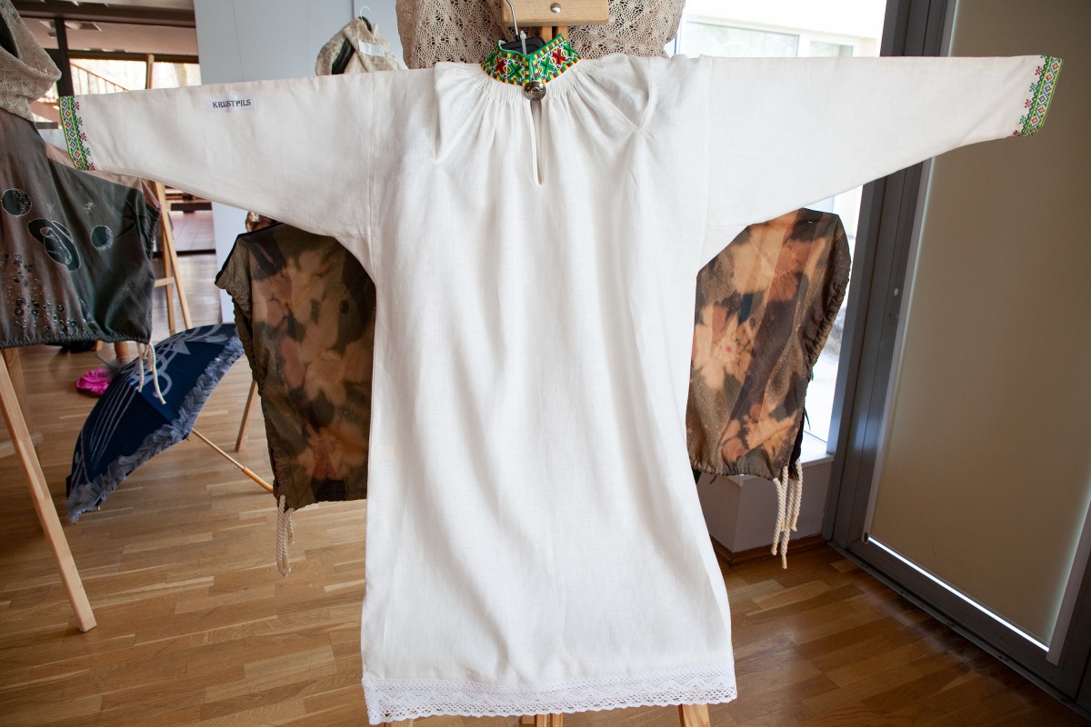 Krustpils krekls ir viens no centrālajiem tautastērpa elementiem, kas izceļas ar vienkāršu, bet izteiksmīgu izšuvumu un baltā lina tīrību.