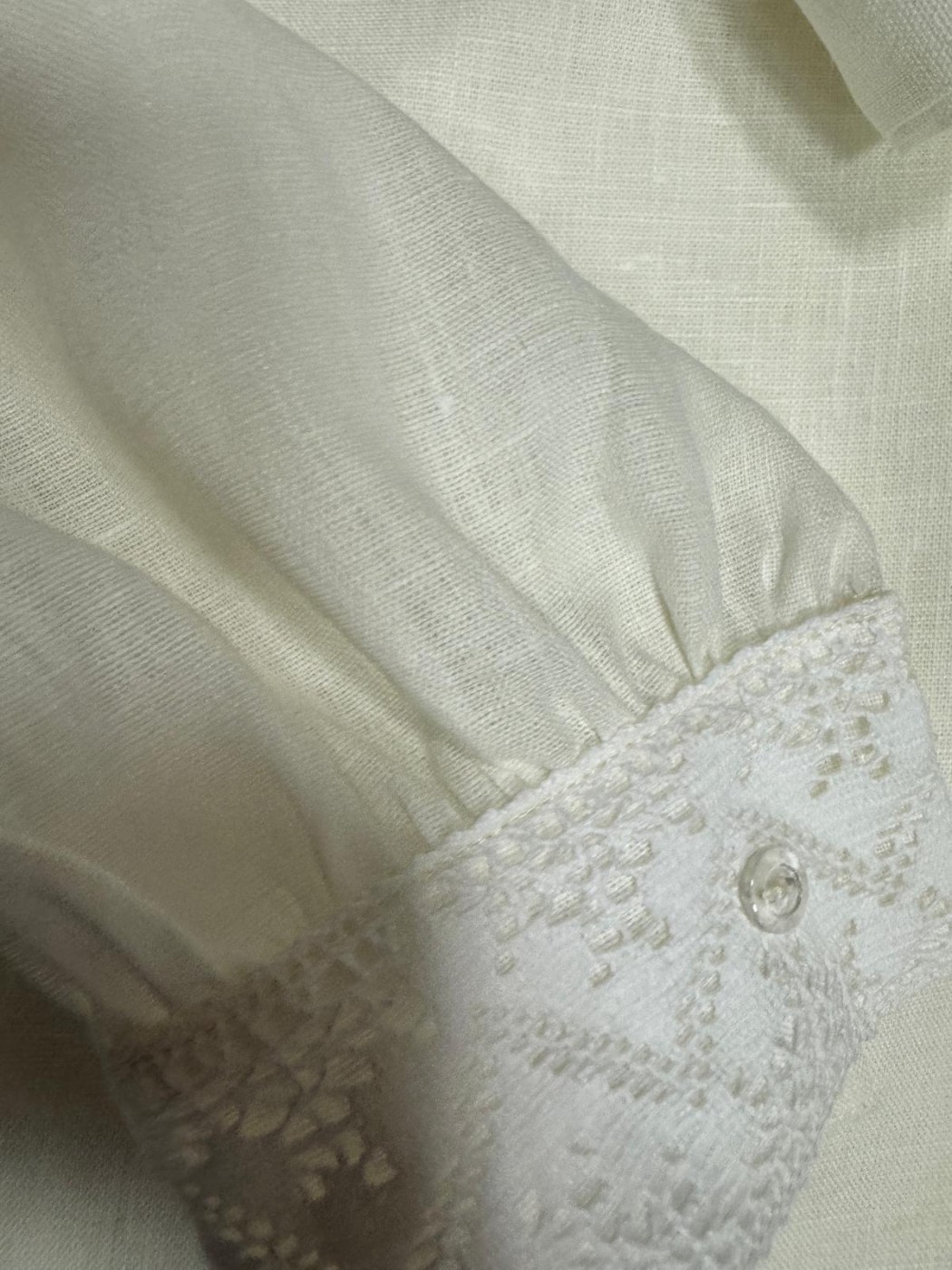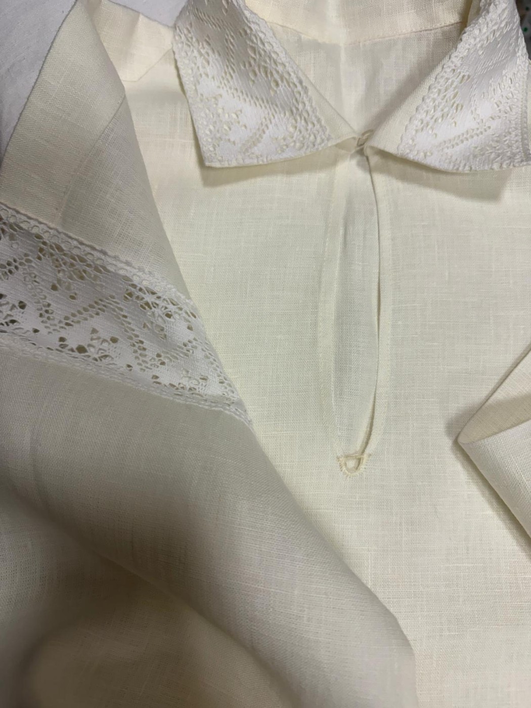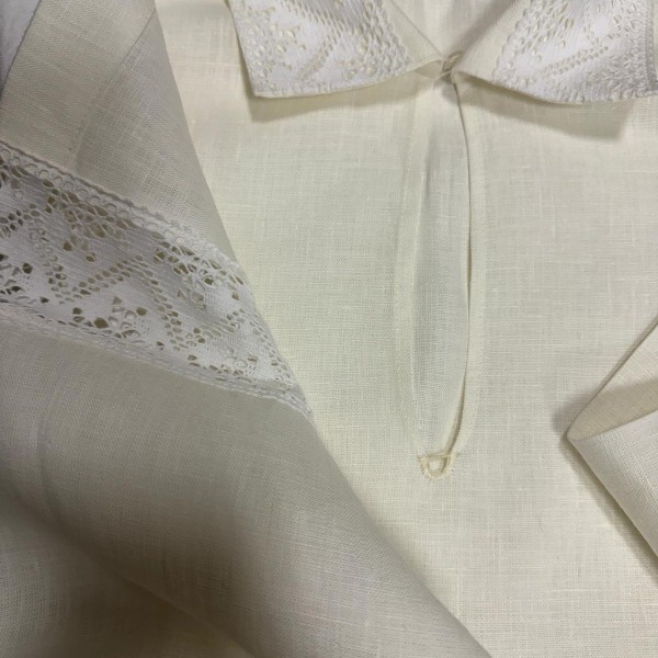 Tautiskais krekls ar mežģīnēm plecos, apkaklei un aprocēm.