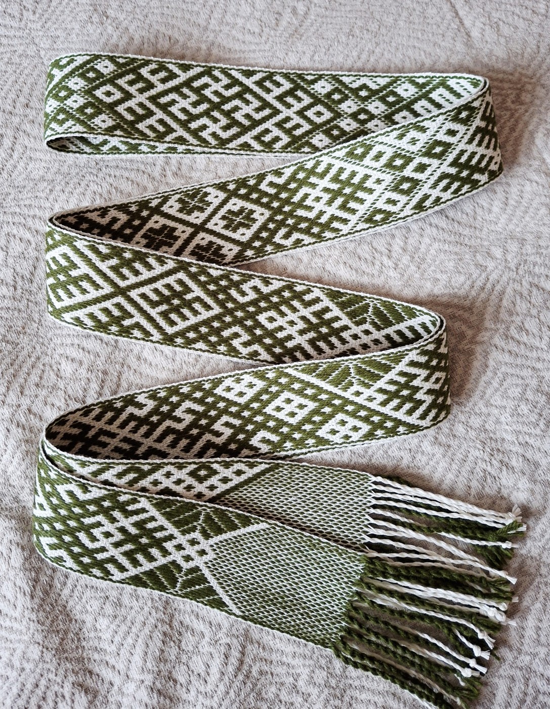 Austa Lielvārdes rakstu josta. Garums 3,2m , platums 6,5 cm.