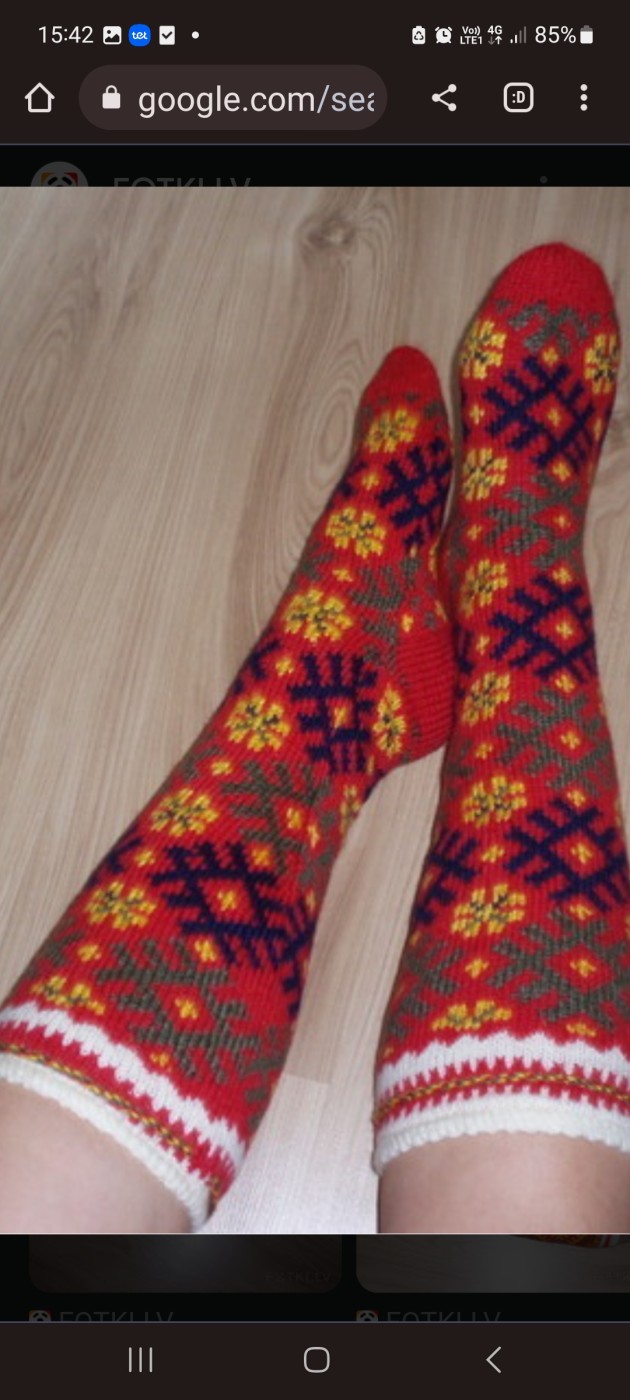 Adu tautiskās zeķes pēc pasūtījuma individuāli vai kolektīviem. 100% roku darbs,kas izturīgāks nekā adot ar mašīnu. Šīs ir Alsungas rakstainās zeķes,kurā izmantota sarkanā pamatkrāsa, raksts ar zilu, zāļu un dzeltenu. Lai pasūtītu, nepieciešams iesniegt pēdas izmērs,zeķes garums un apkārtmērs,ko jāiesniedz kopā ar pasūtījumu. Lai pagatavotu,ir nepieciešams laiks, jo adu ar rokām. Tāpēc pasūtījums jāiesniedz savlaicīgi.