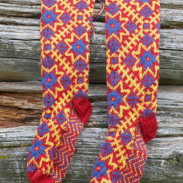 Adu tautiskās zeķes pēc pasūtījuma individuāli vai kolektīviem. 100% roku darbs,kas izturīgāks nekā adot ar mašīnu. Šīs ir Alsungas rakstainās zeķes,kurā izmantota sarkanā pamatkrāsa, raksts ar zilu un dzeltenu krāsu. Lai pasūtītu, nepieciešams iesniegt pēdas izmērs,zeķes garums un apkārtmērs,ko jāiesniedz kopā ar pasūtījumu. Lai pagatavotu,ir nepieciešams laiks, jo adu ar rokām. Tāpēc pasūtījums jāiesniedz savlaicīgi.
