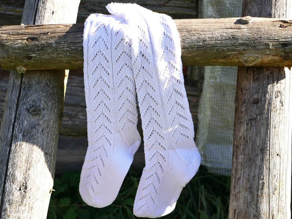 Adu tautiskās zeķes pēc pasūtījuma individuāli vai kolektīviem. 100% roku darbs,kas izturīgāks nekā adot ar mašīnu. Šīs ir zeķes mežģīnadījumā, kas adītas ar rokām. Izmantota baltā kokvilnas dzija. Lai pasūtītu, nepieciešams iesniegt pēdas izmērs,zeķes garums un apkārtmērs,ko jāiesniedz kopā ar pasūtījumu. Lai pagatavotu,ir nepieciešams laiks, jo adu ar rokām. Tāpēc pasūtījums jāiesniedz savlaicīgi.