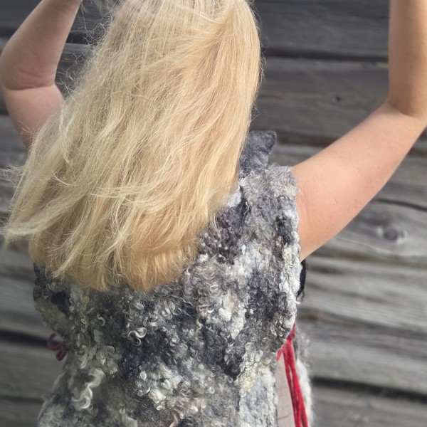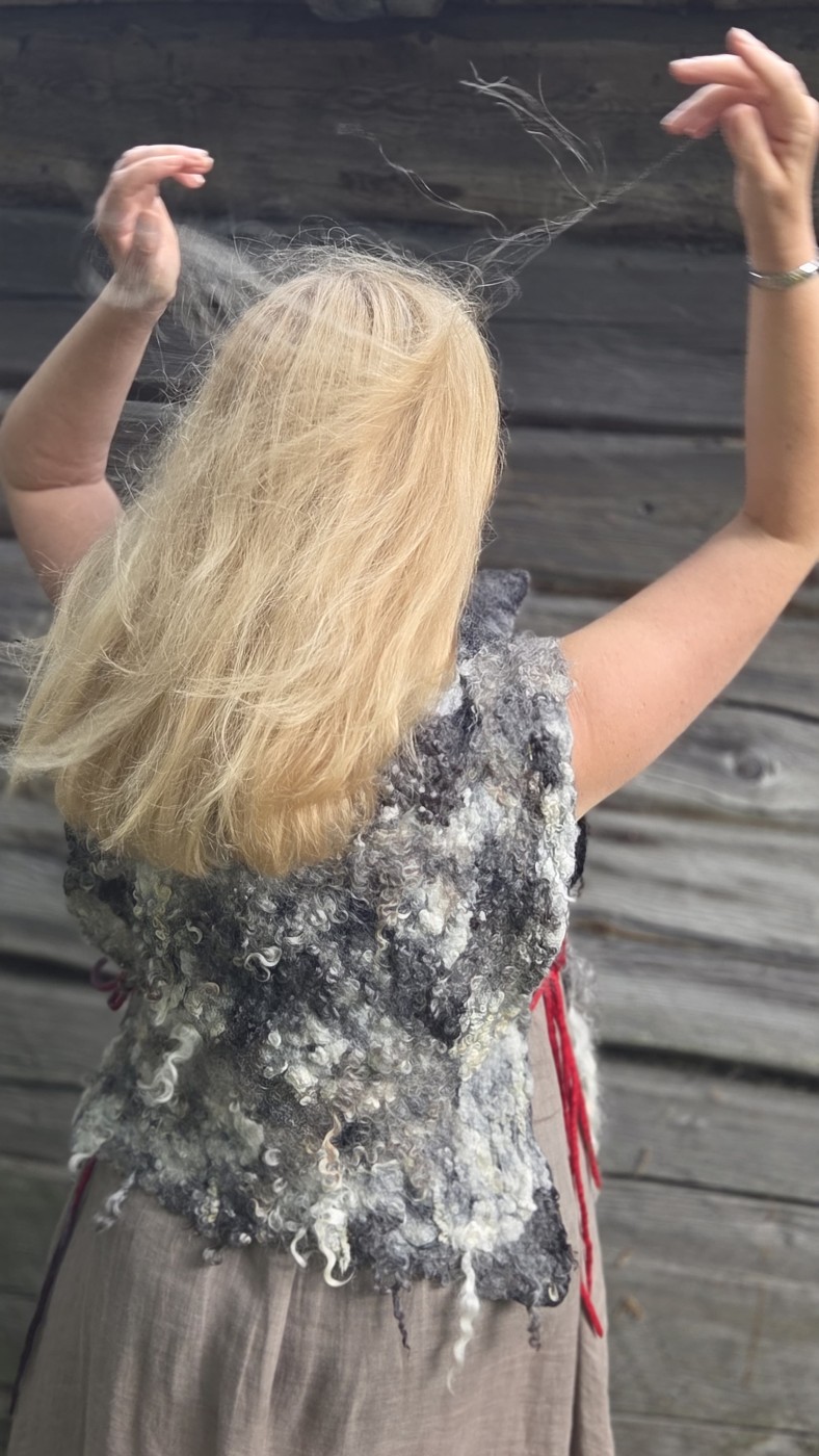 Filcātā veste "Savvaļas vilnas faktūras" ir darināta
