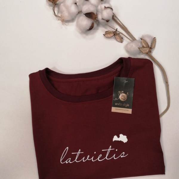 Vīriešu t-krekls bordo.Latvietis.S,L,XL