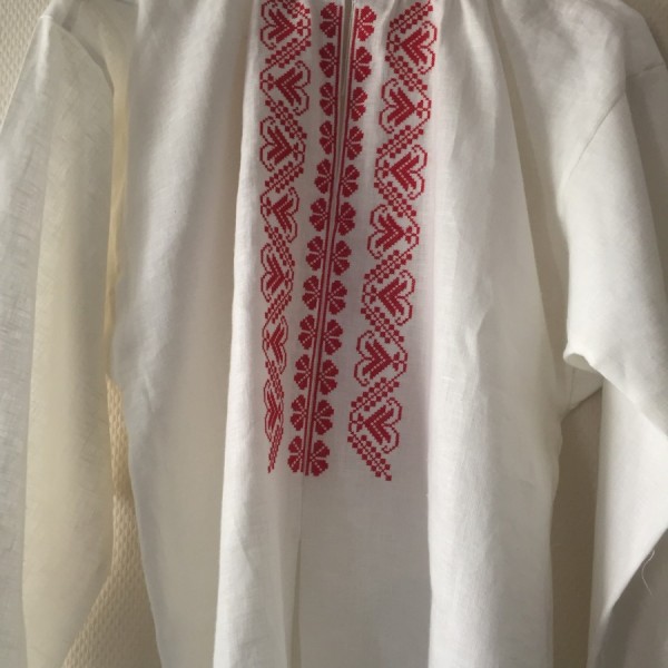 Latgales vīru krekls - balts linu krekls, kas rotāts ar bagātīgu sarkanu izšuvumu.