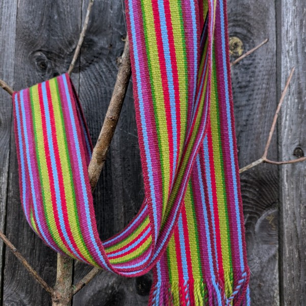 Ziemeļvidzemes Vīru tautiskā svītrotā josta Rujiena Nr.1. izmēri 8.5 cm plata, 3m gara