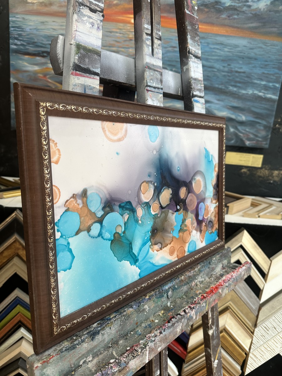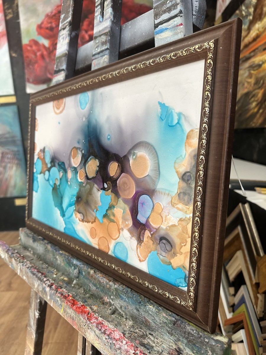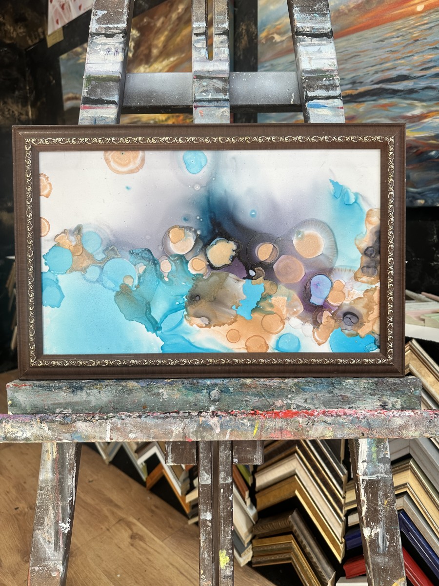 Abstrakta glezna ar spirta tintēm | Oriģināldarbs rāmī | Moderns interjera dekors