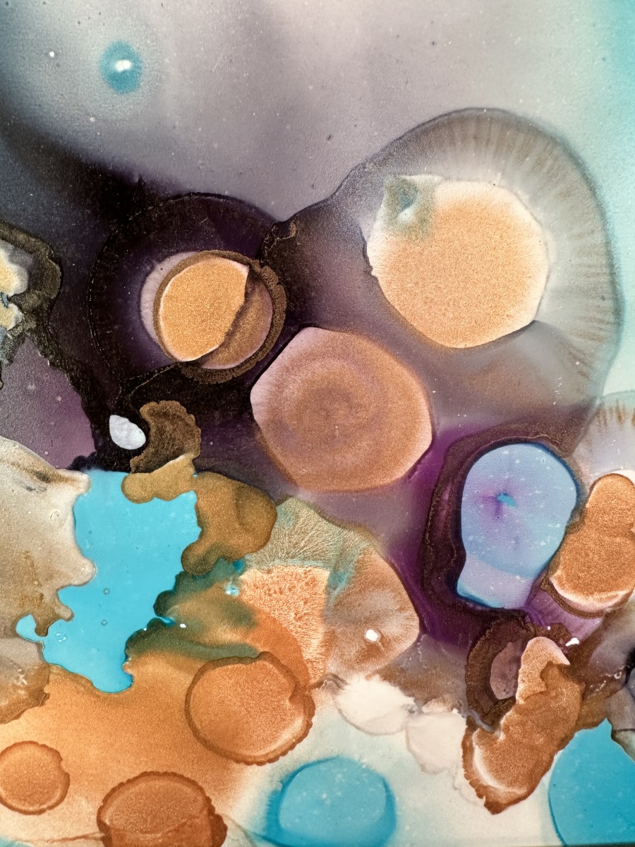 Viegls, plūstošs un hipnotisks, šis darbs radīts ar spirta tintēm, kas veido unikālas, neparedzamas formas un krāsu pārejas.