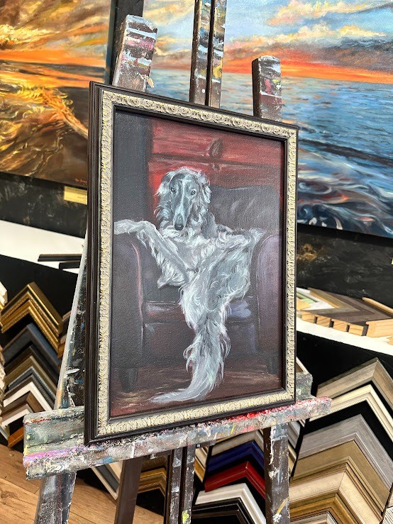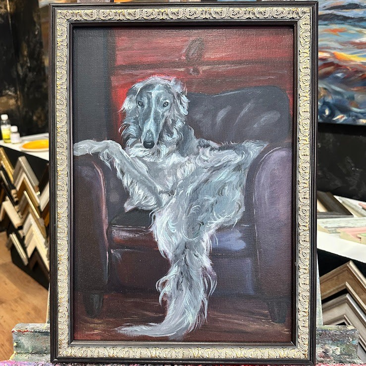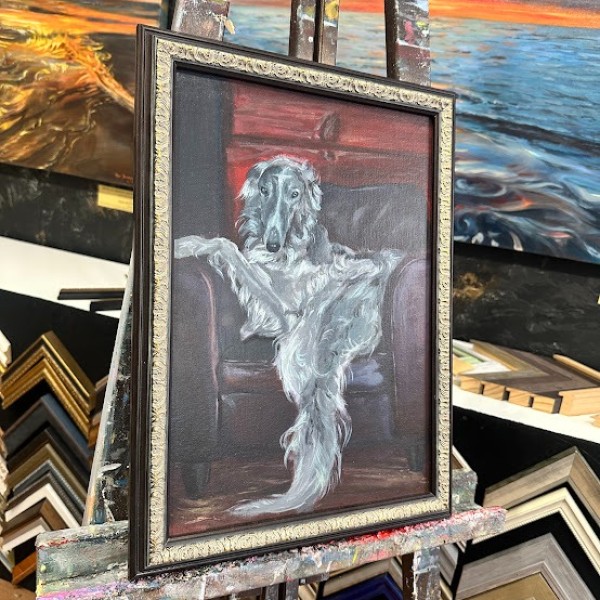 Glezna ir ierāmēta klasiskā rāmī, kas papildina tās noskaņu un padara to par gatavu interjera elementu.