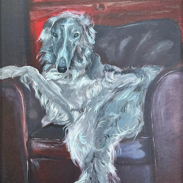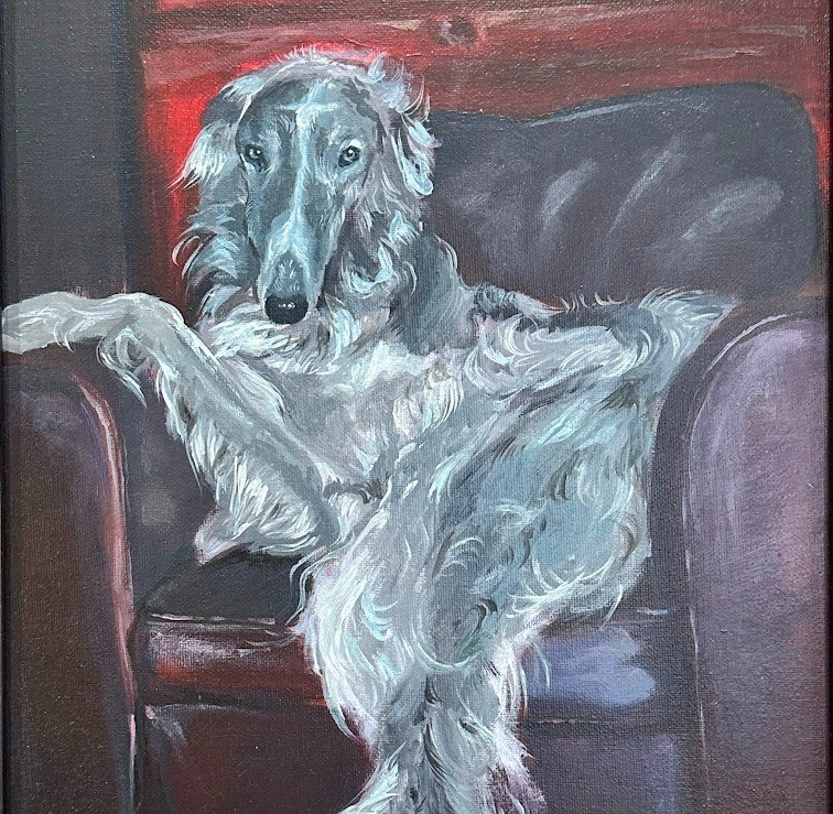 Elegants, mierīgs un mazliet ironisks — šis suns krēslā izskatās kā īsts saimnieks savā telpā.