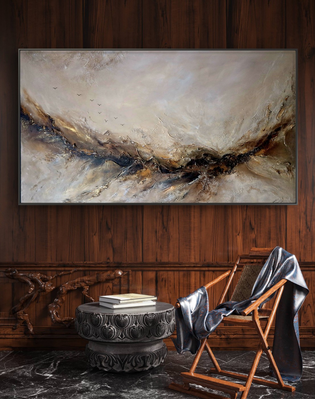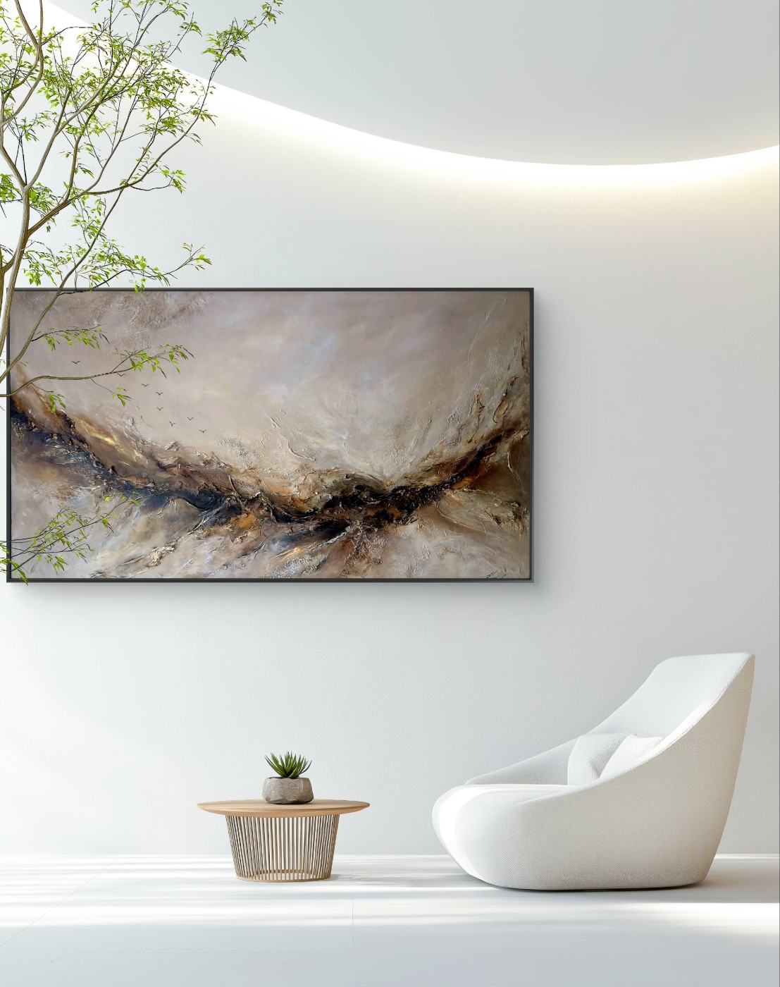 Jauktā tehnika. Teksturizēts darbs. Glezna pilnīgi gatava uzstādīšanai. Nav nepieciešams papildus rāmis.