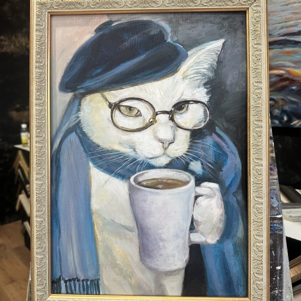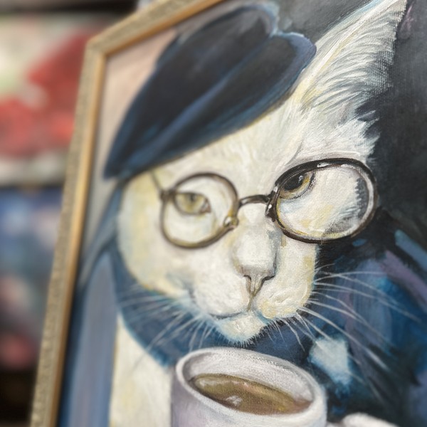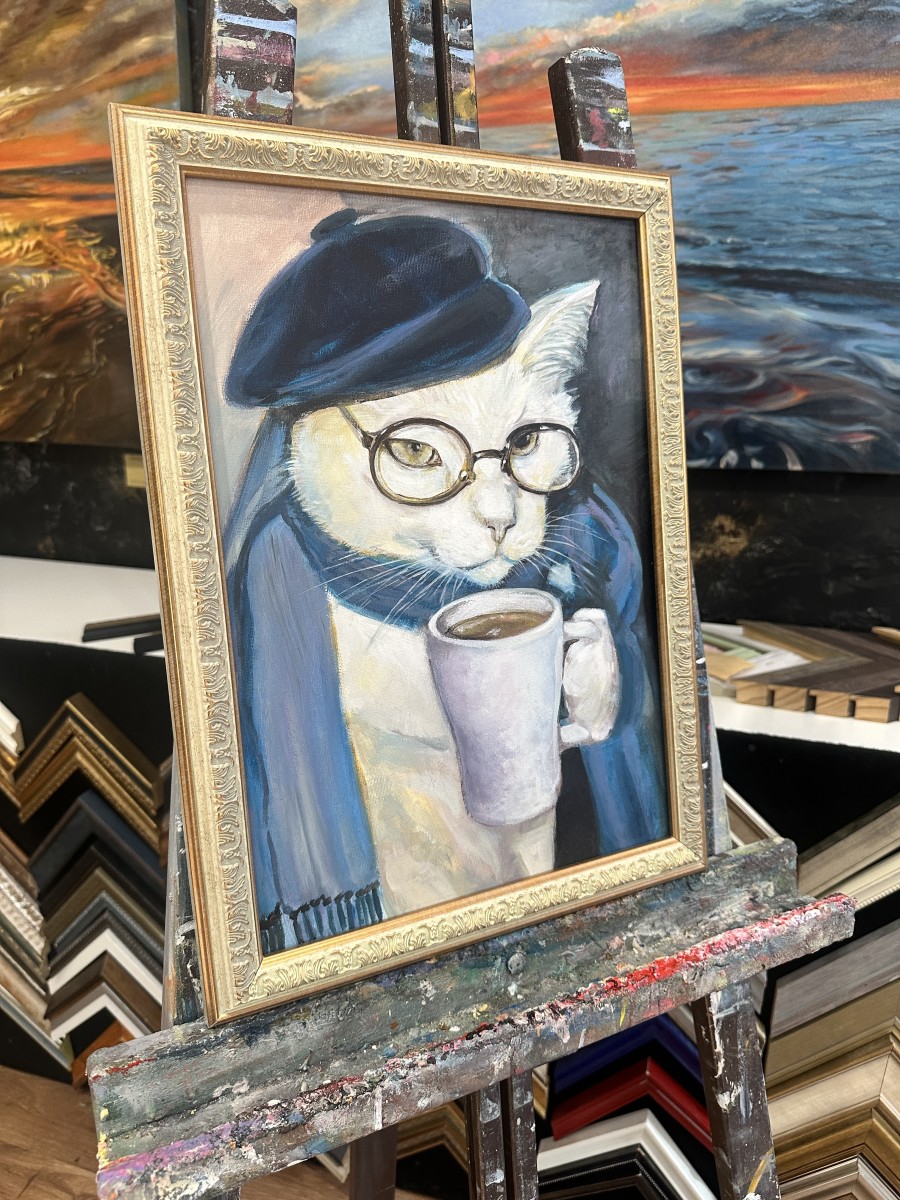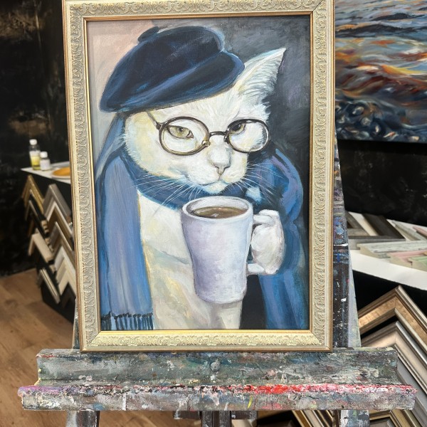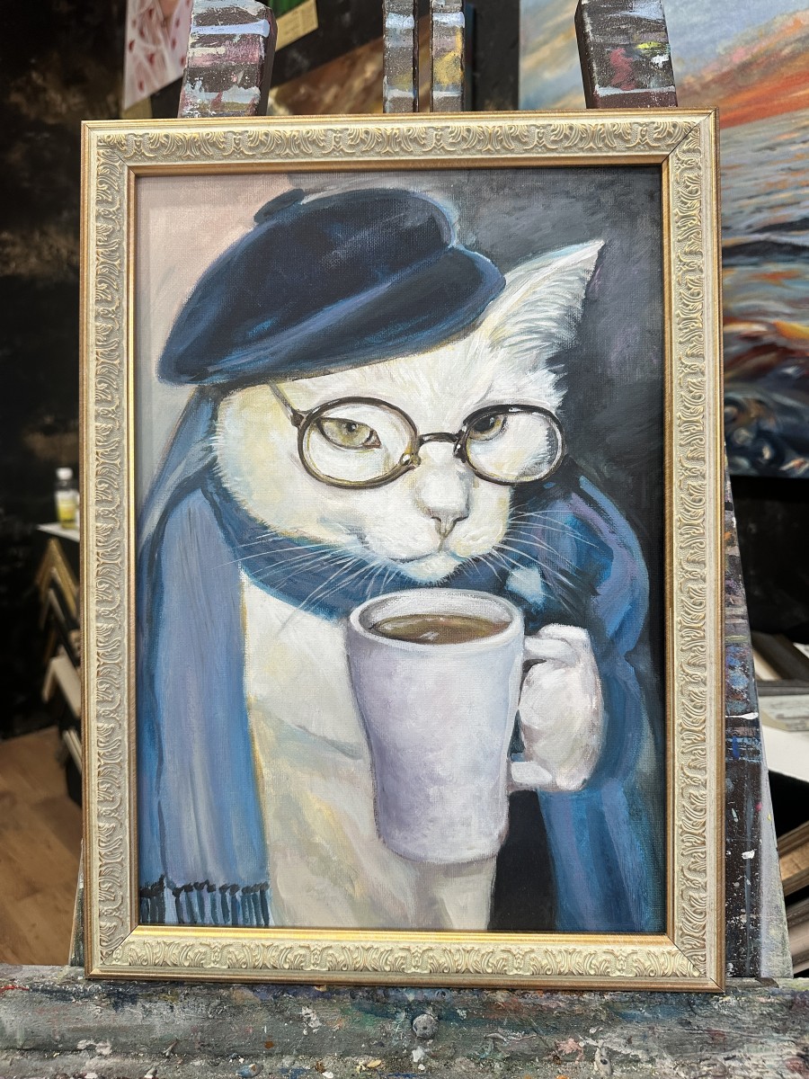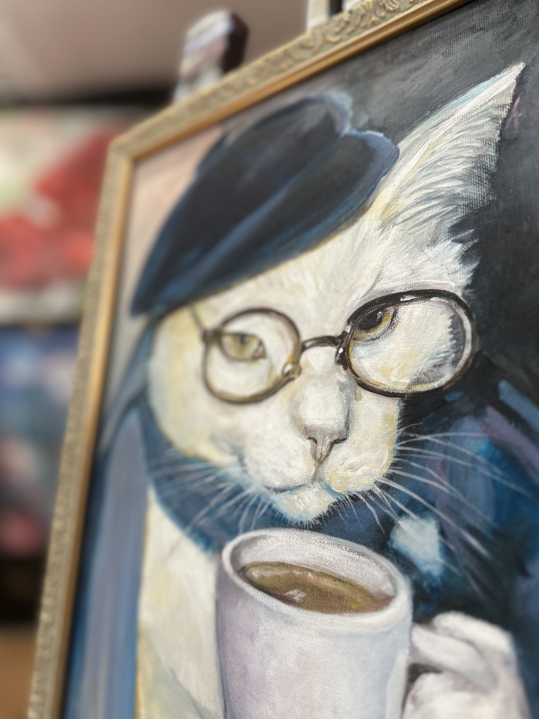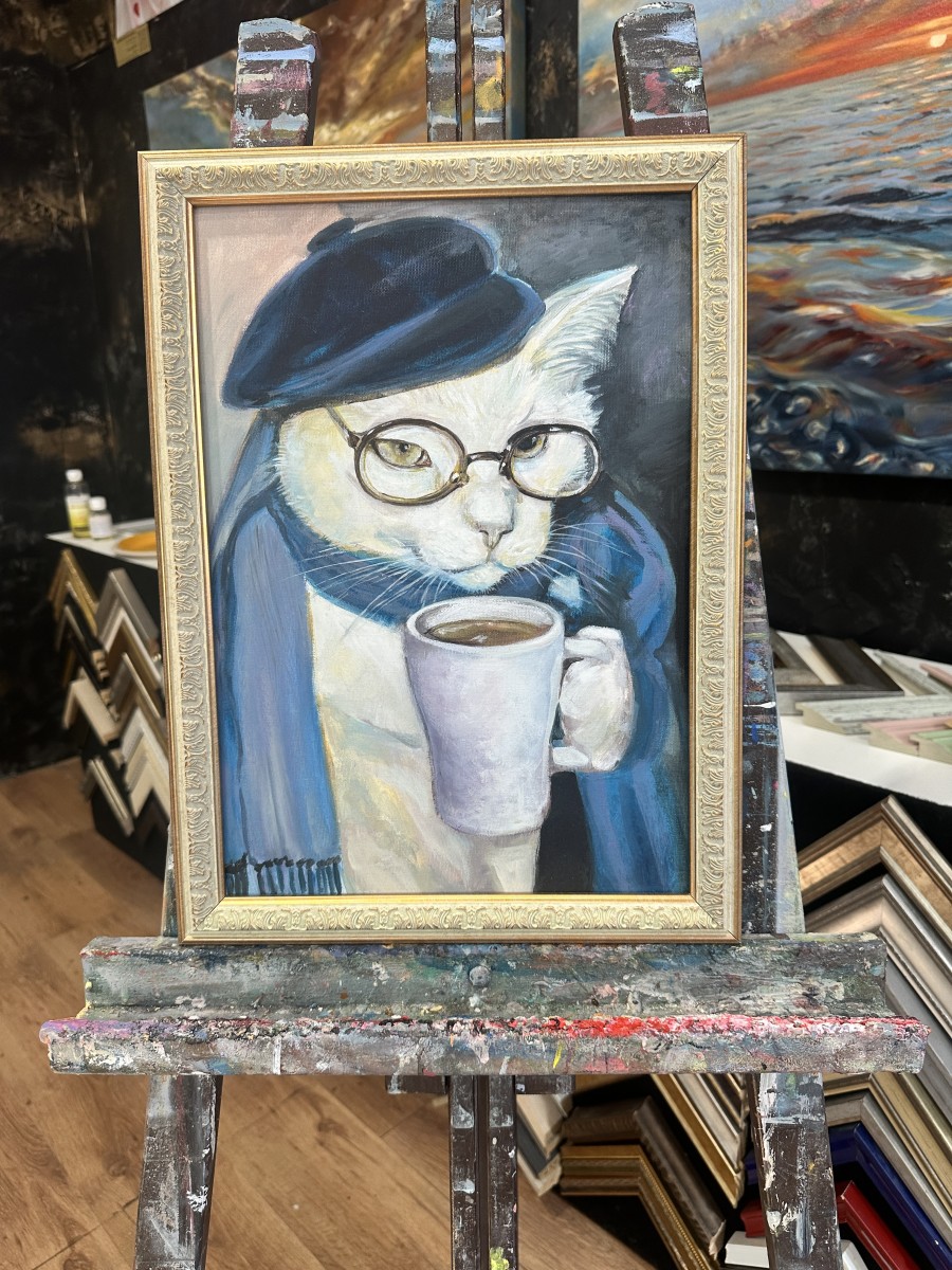 Glezna ar kaķi | Oriģināldarbs | Stilīgs un rakstura pilns dekors